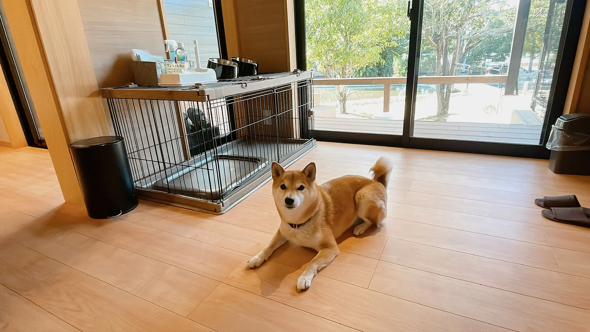 お部屋にはケージやワンちゃん向けアメニティも充実。