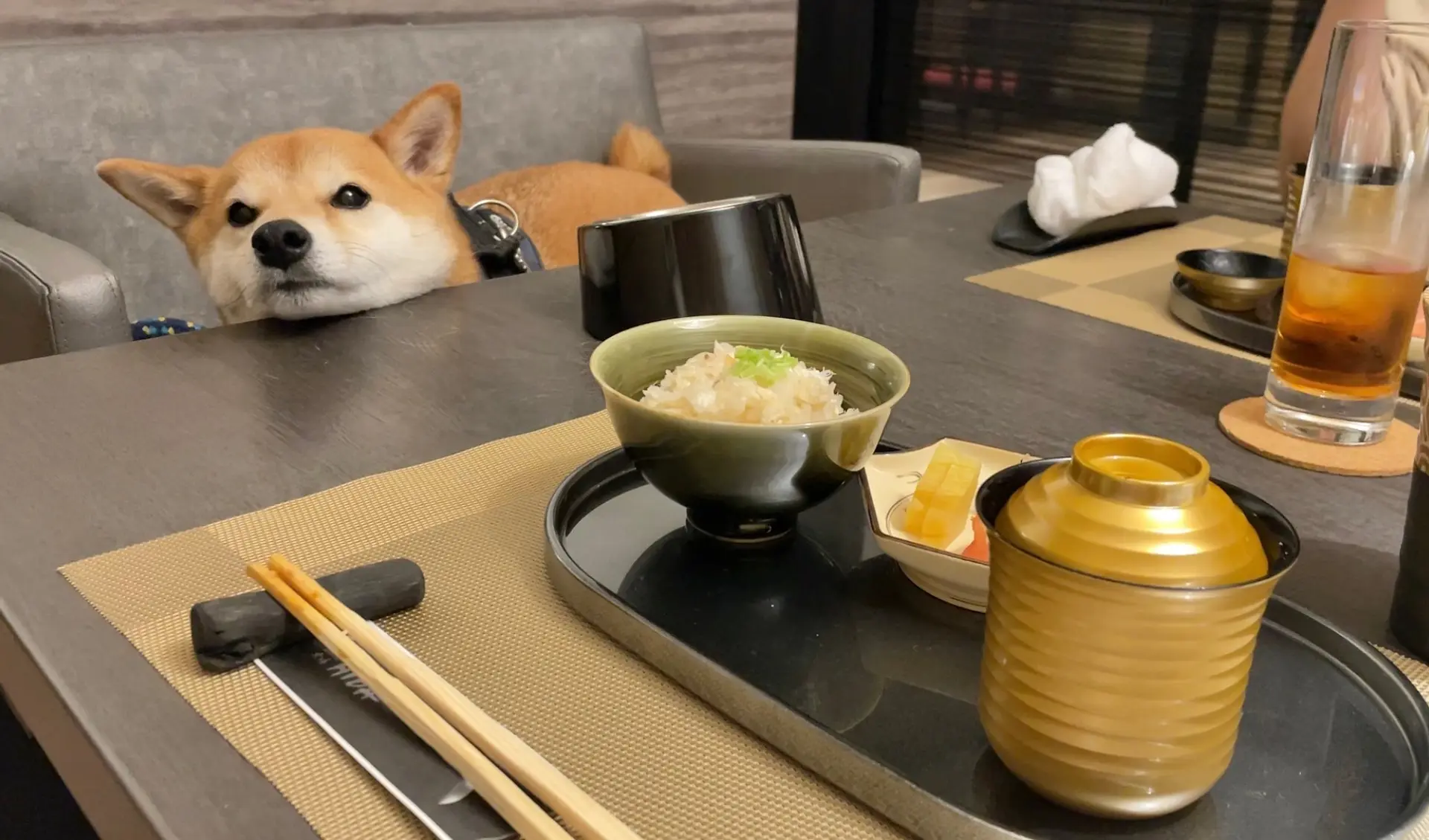 ワンちゃんと一緒にご飯を食べられる!