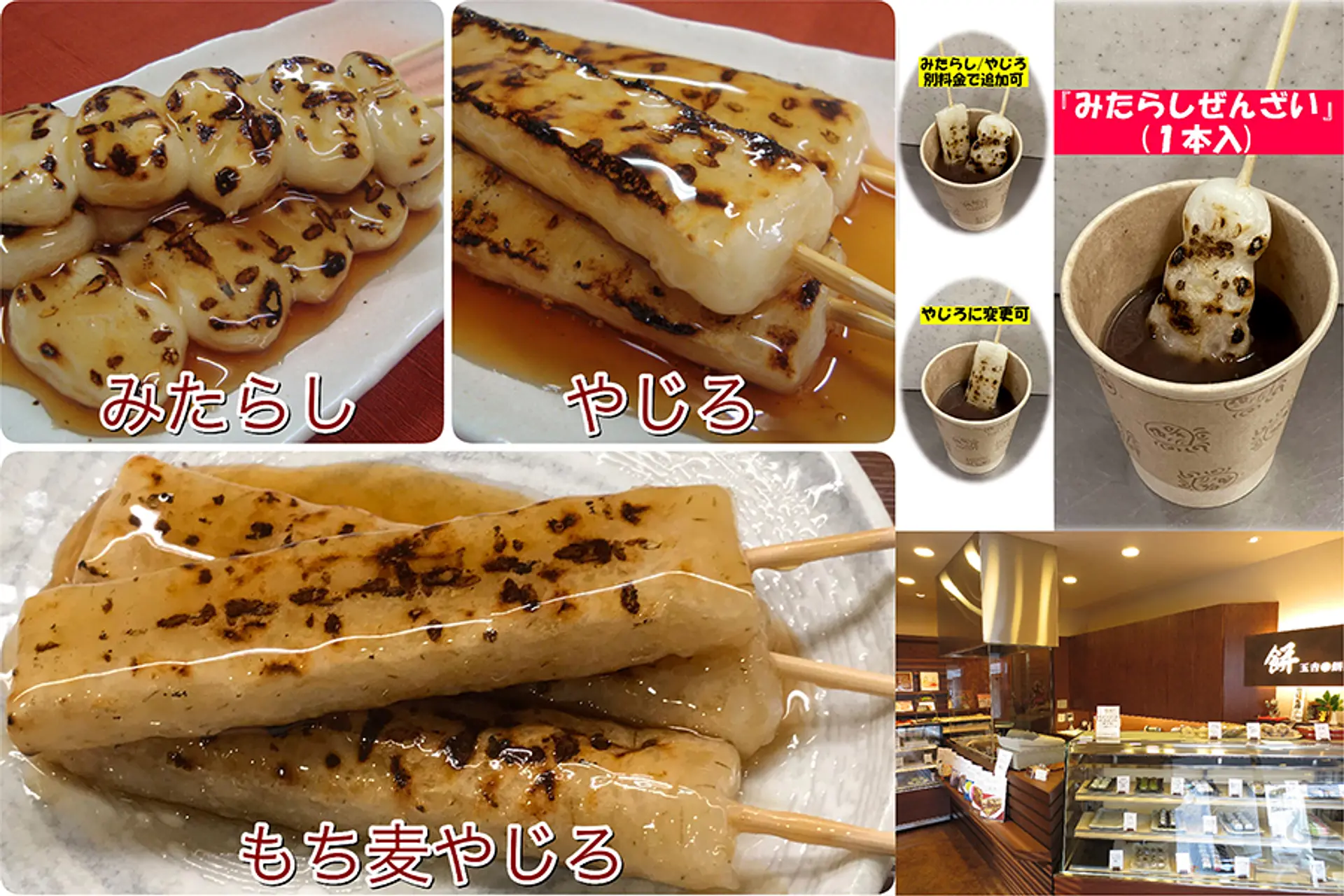 - 料金:みたらしだんご1本119円、やじろ1本119円、もち麦やじろ1本130円、みたらしぜんざい1本入り432円