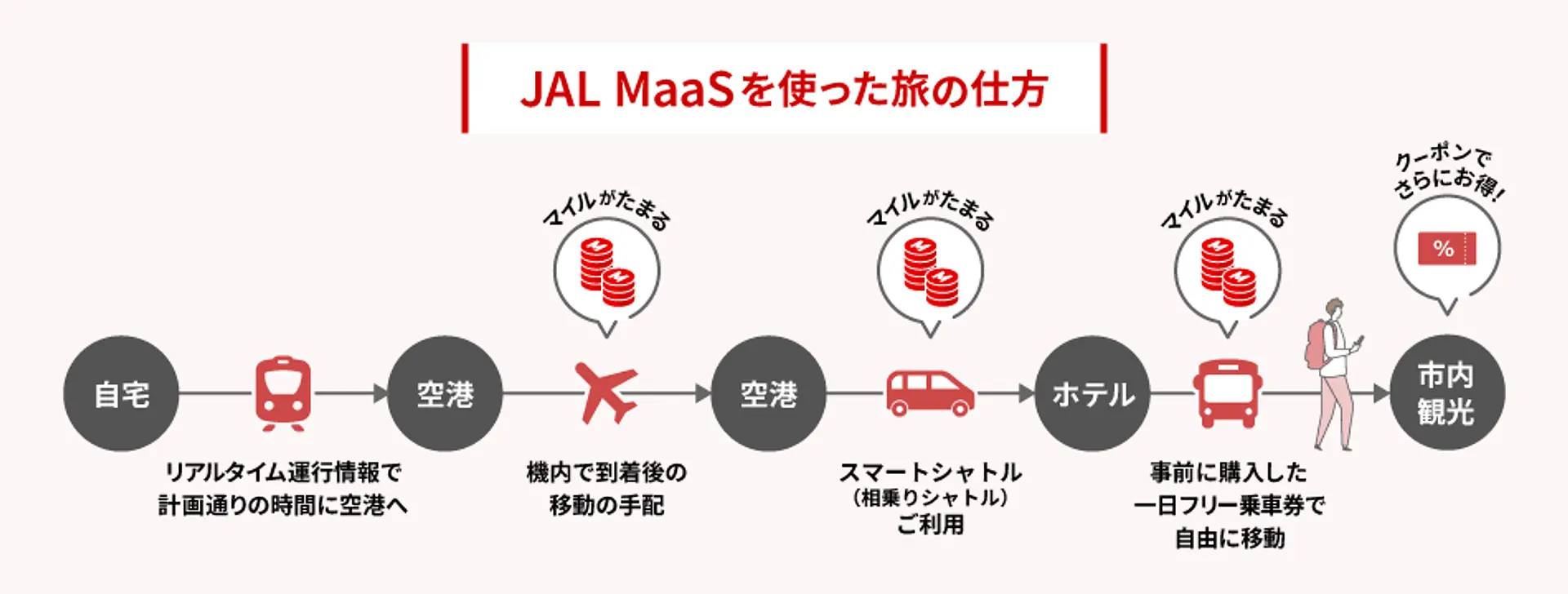 また、JAL MaaSから公共交通の乗車券を購入することで、マイルがたまる嬉しい特典もあります。ぜひこの際にJAL MaaSを使ってスムーズな移動をお楽しみください。