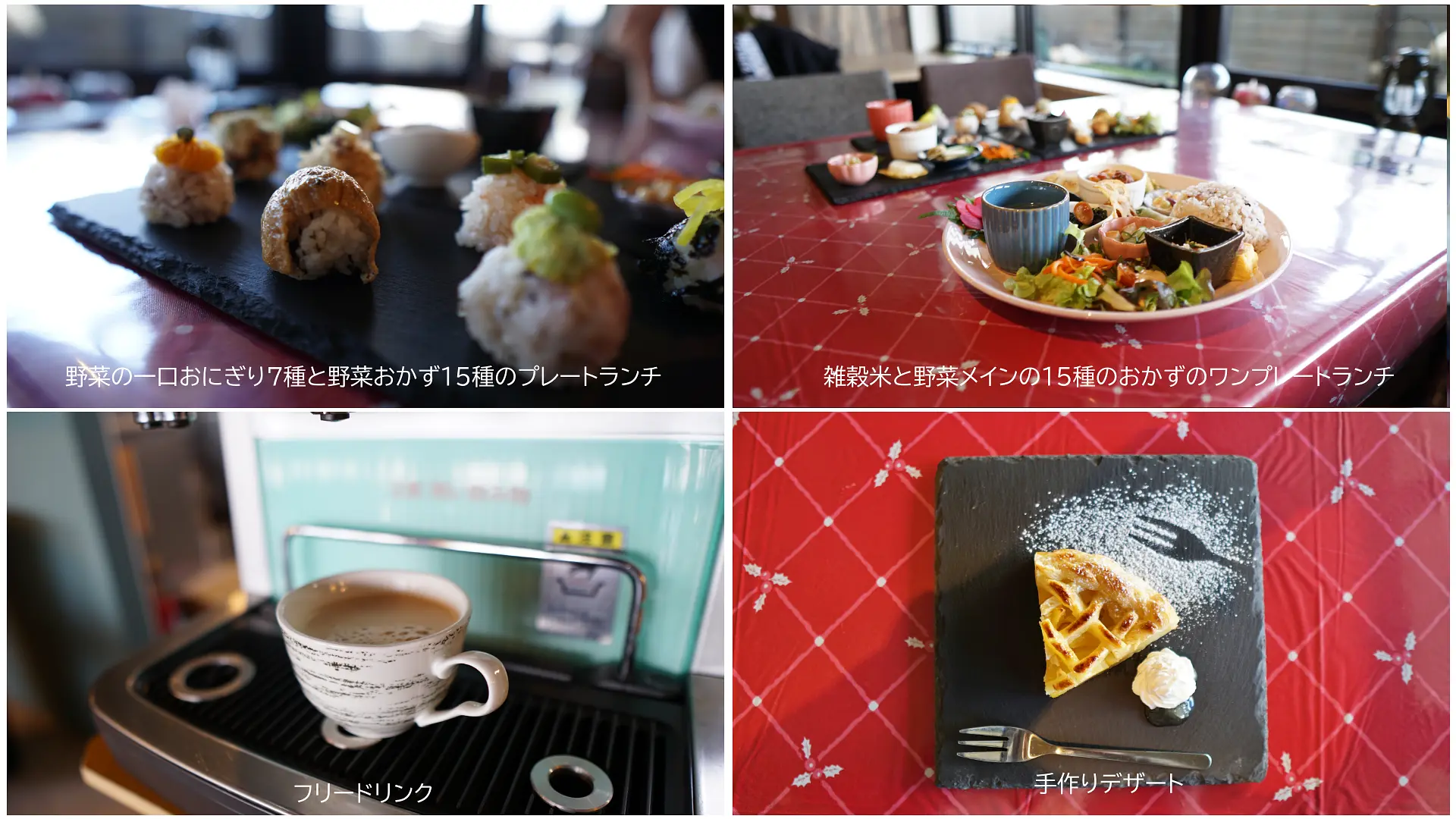 野菜のランチと聞くと男性には量が少ないかな?と思っていましたが、おかずに加えて種類が違う7個の一口おにぎりもあるので、男性の自身でも満腹になりました。