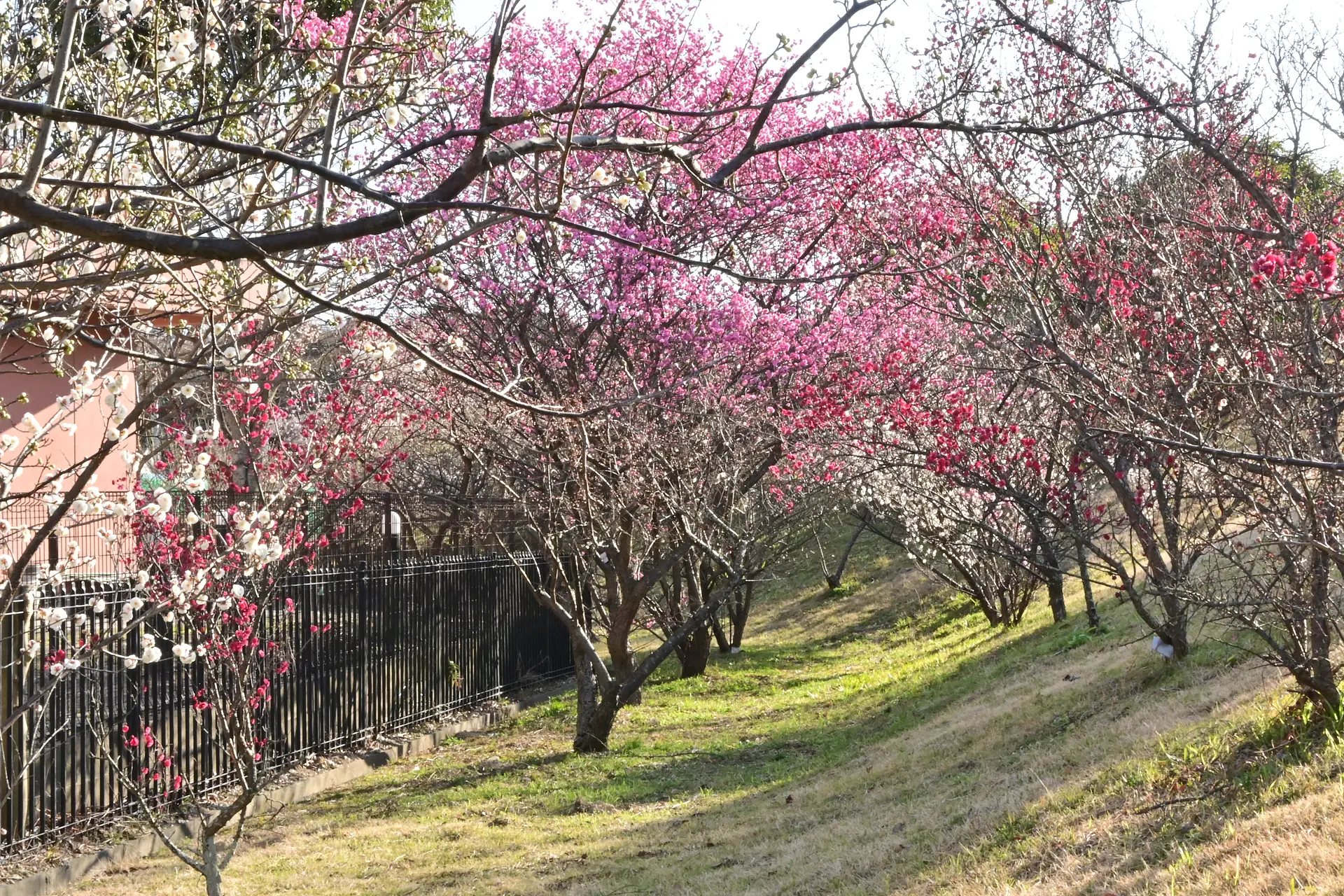 桜は1週間ほどで見ごろを過ぎてしまいますが、梅は1ヶ月ほど咲き、香りも楽しめます。今年、南部丘陵公園の梅は寒波の影響で例年より2週間以上遅く咲き始めました。3月半ばでも楽しめそうです。