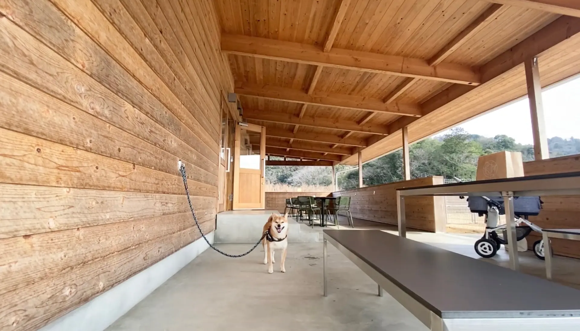 ドッグランの隣には、どなたでも利用可能な屋根付きのテラスもあるため、飼い主は席に座りながらひと休憩もできます。