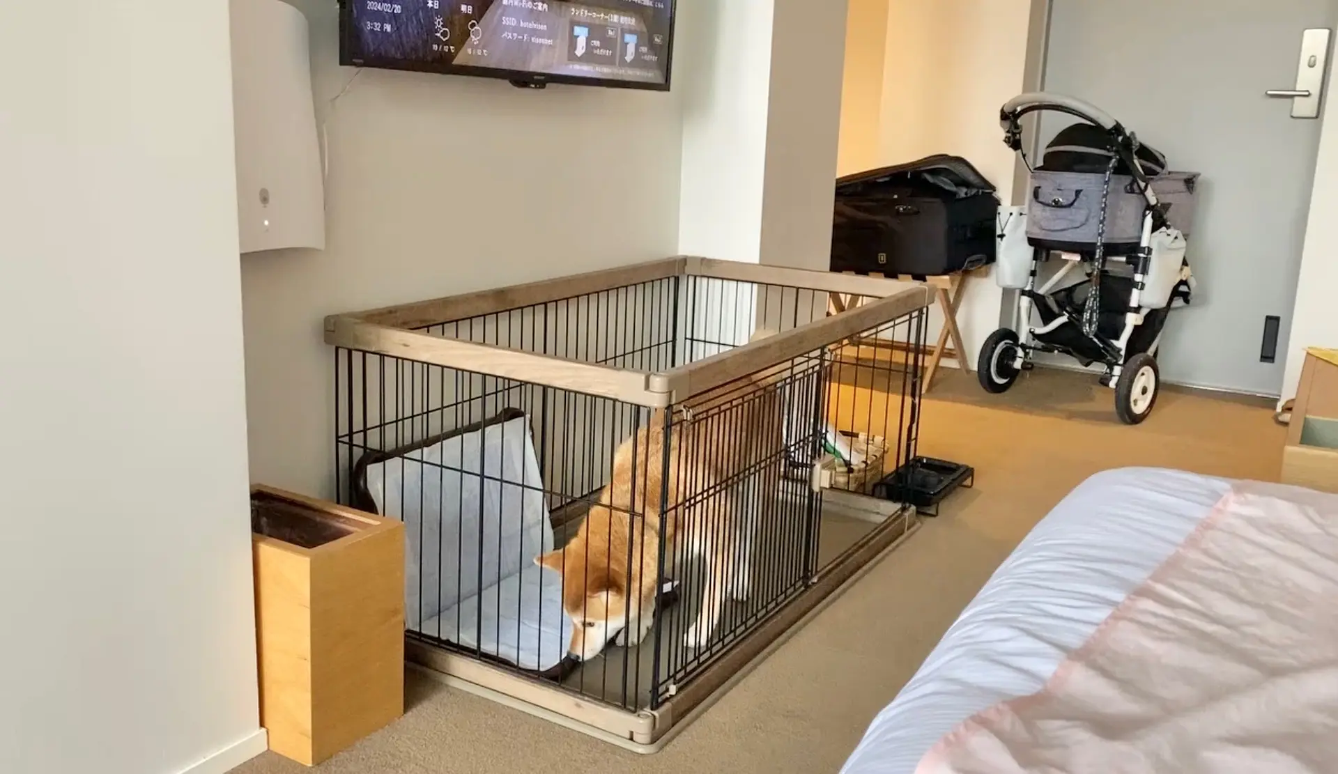 またお部屋内にはケージはもちろんのこと、愛犬向きアメニティも揃ってるので安心。