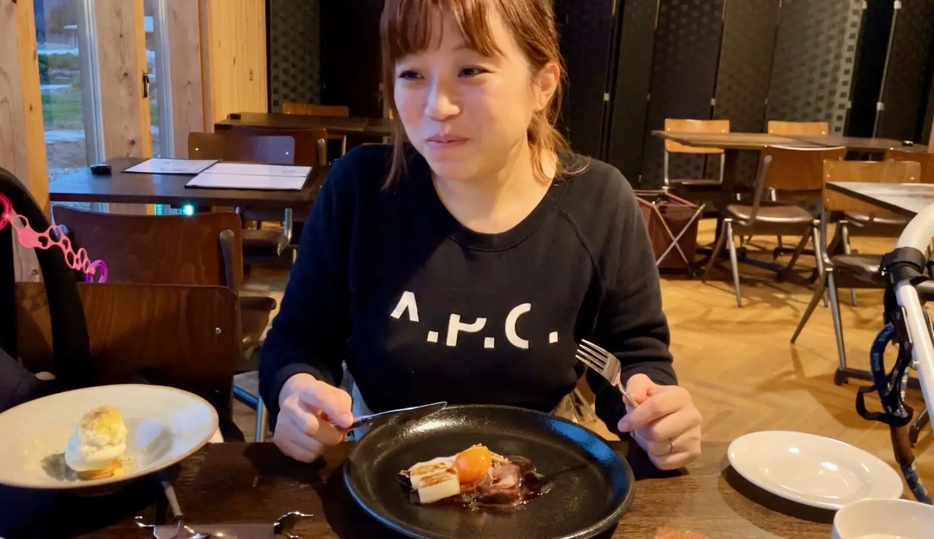 どの料理も野菜、魚、お肉1つ1つの素材を活かしたこだわり感じられる一品で、心も体も満たされるコース料理でした。(写真はお肉に大満足の妻)