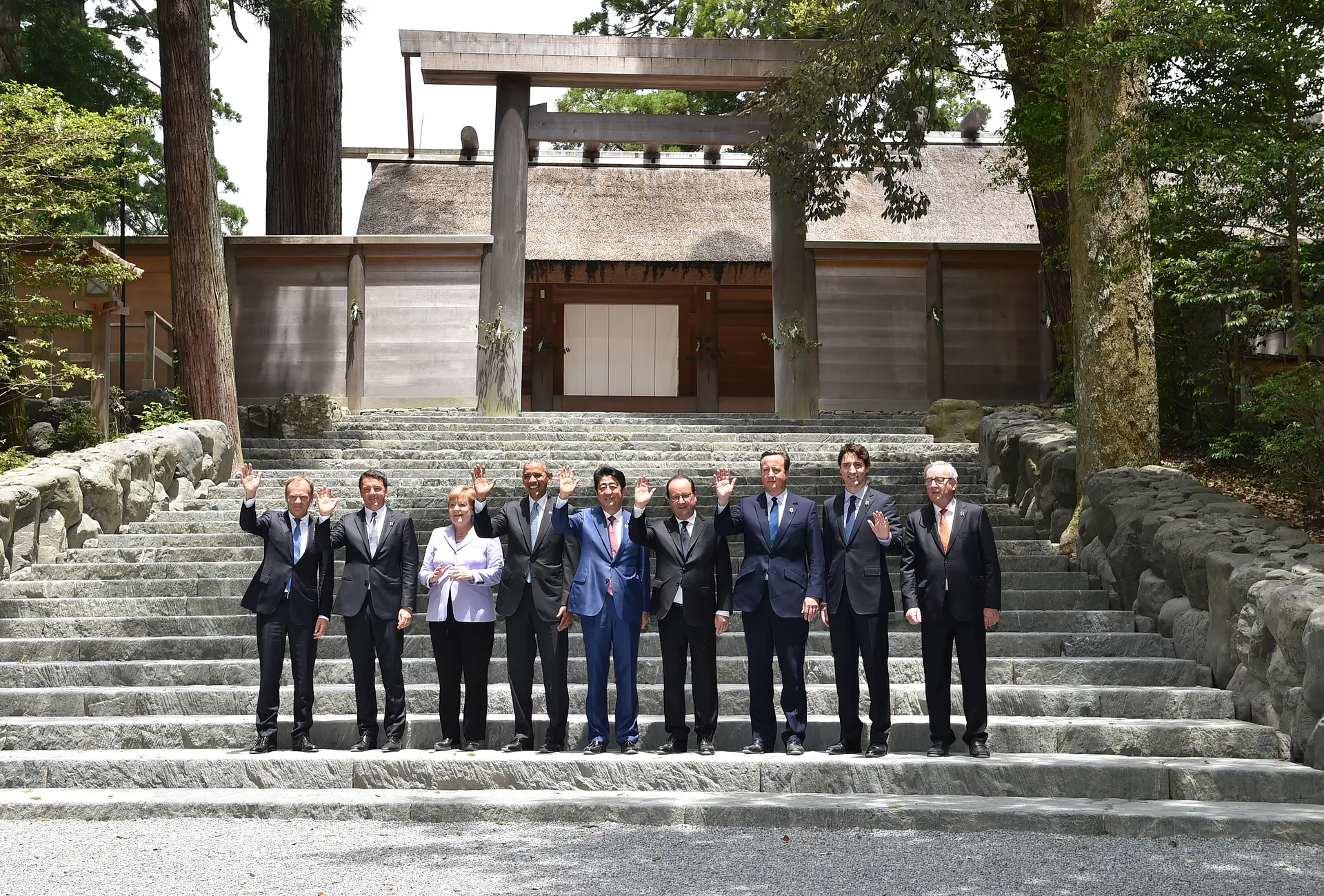 写真:内宮正宮前で行われたサミット参加首脳の公式撮影(外務省提供)