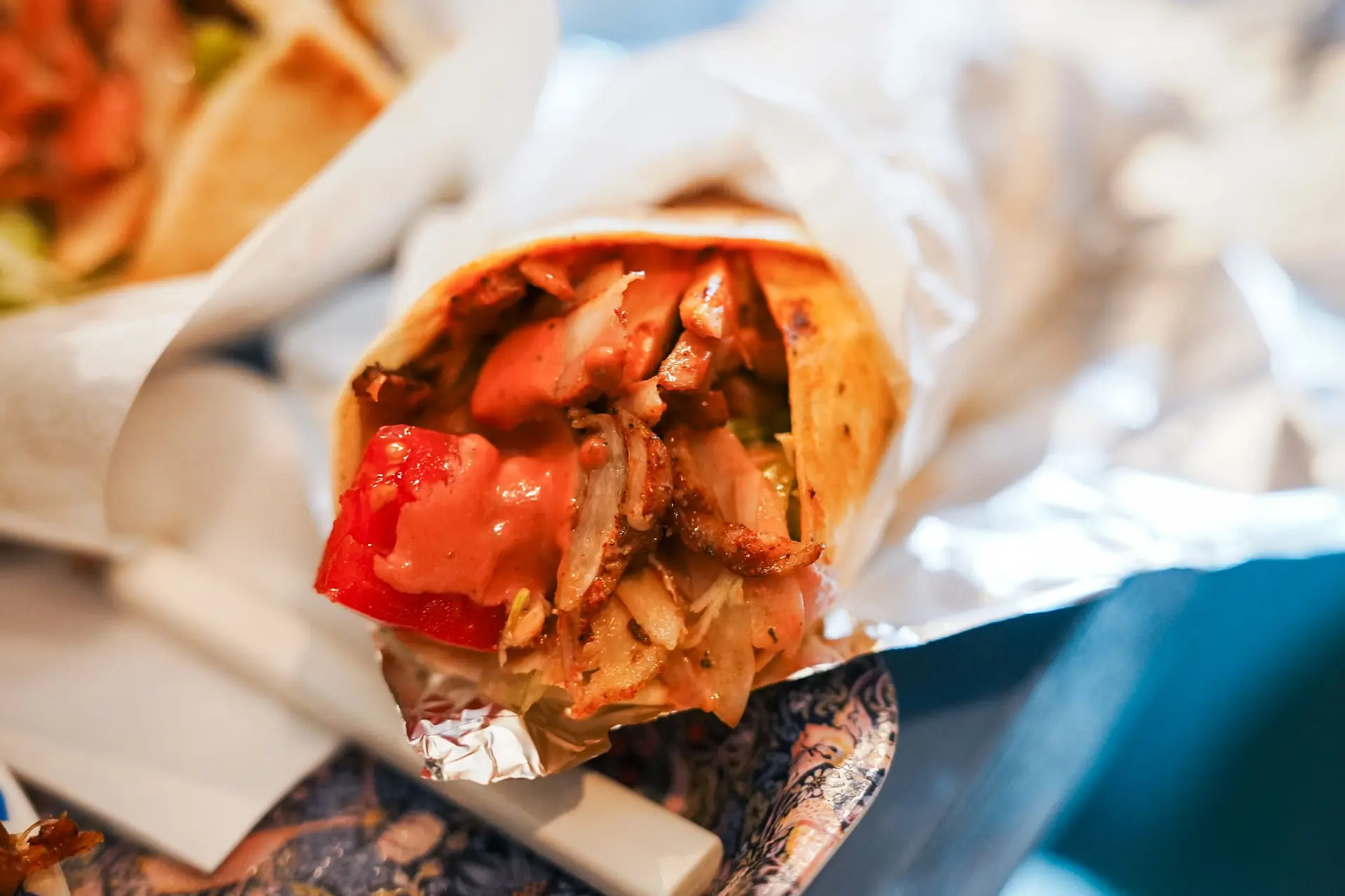 トルコでは「ドゥルム」とも言うそうで、片手で食べることができ、生地が破れたり具材をこぼす心配がないので、テイクアウトやドライブ途中などにオススメ。