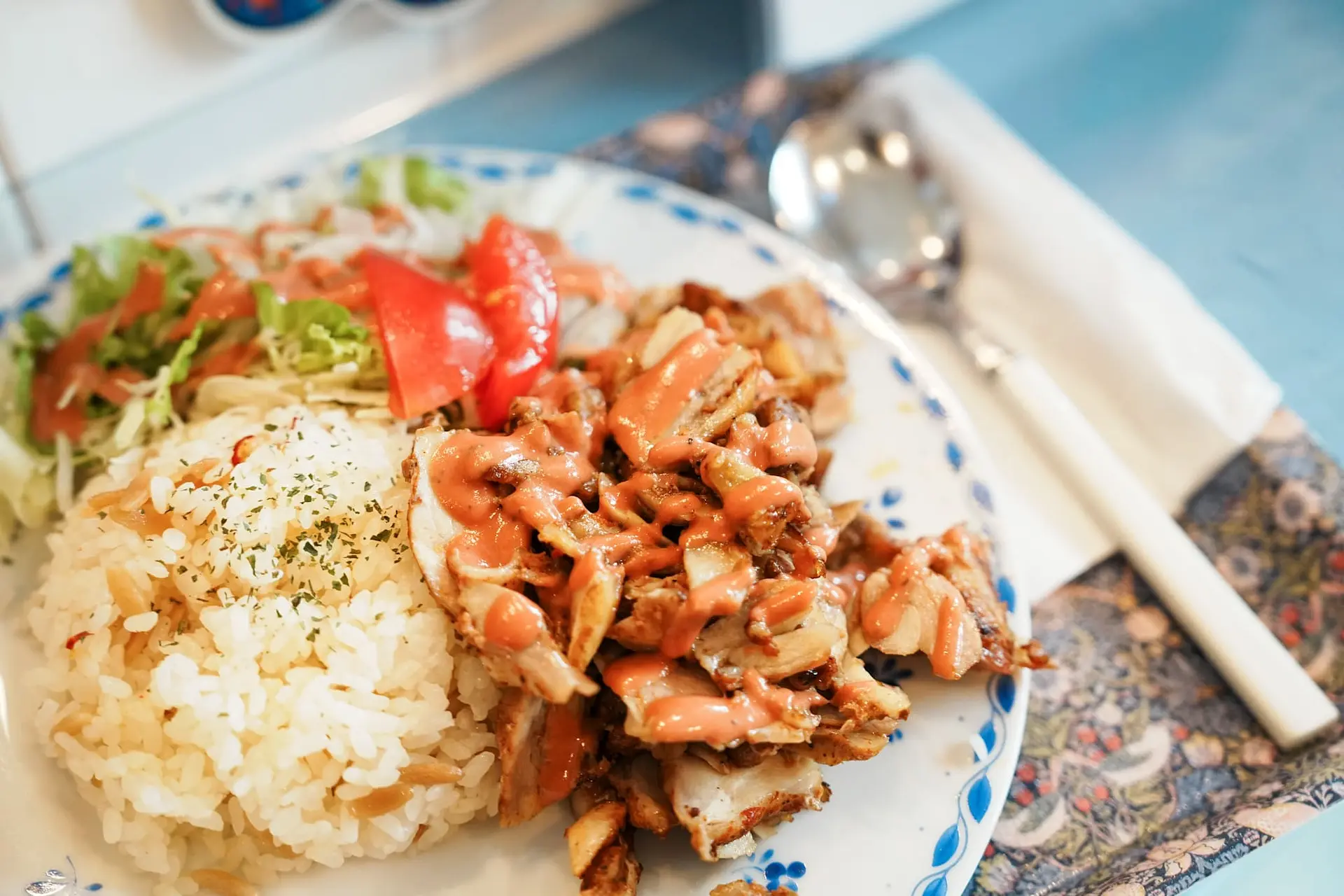 前日から独自のスパイスに漬け込み、焼き上げる鶏肉はふっくらジューシー。噛めば肉汁とスパイスが口いっぱいに広がります。香ばしく焼き上げたジューシーでスパイシーな味わいが本当に美味しい!