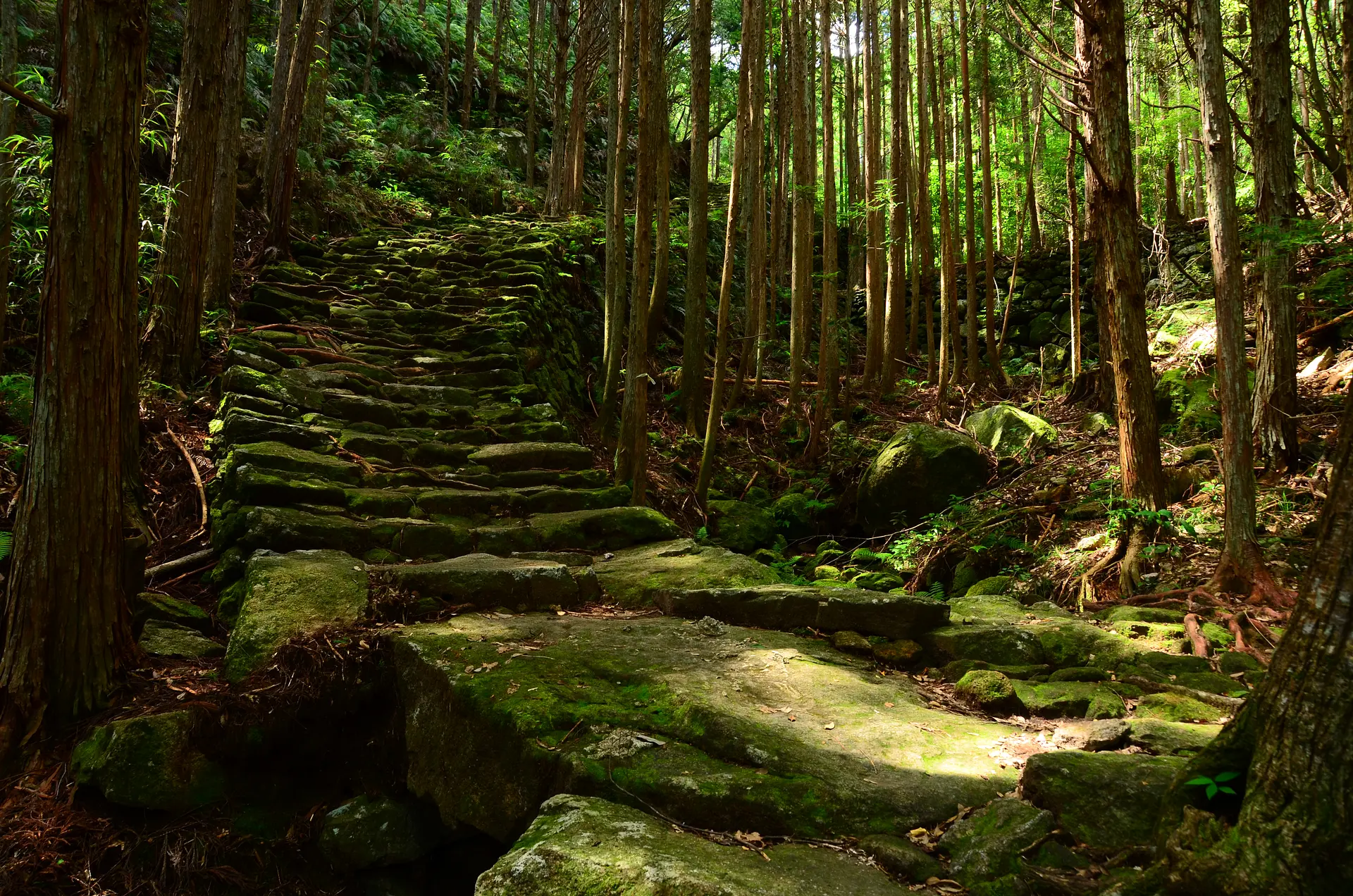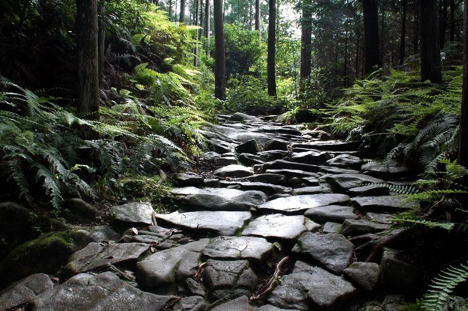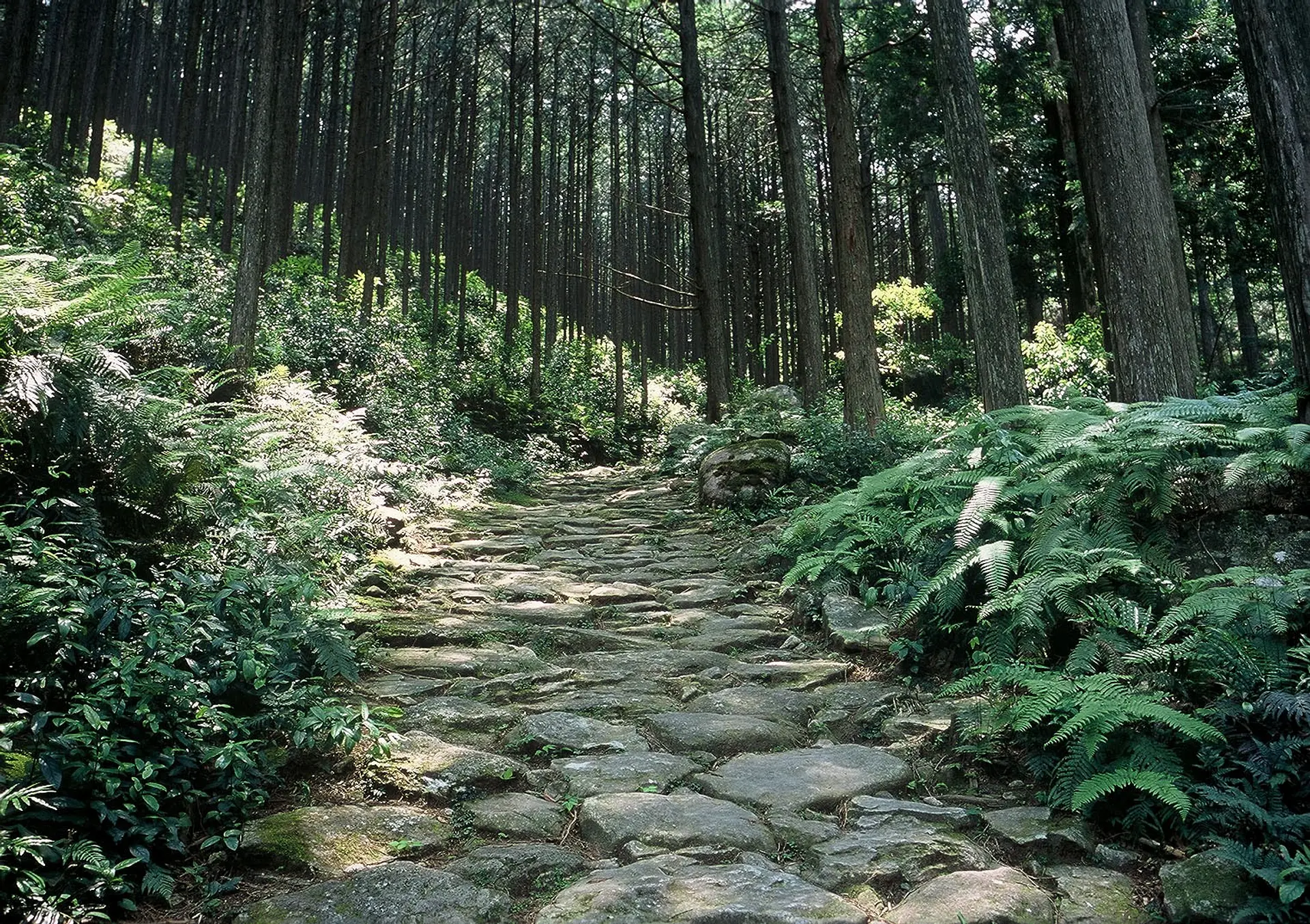 熊野古道とは、熊野三山(熊野本宮大社、熊野速玉大社、熊野那智大社)に詣でるための道です。熊野古道を含む「紀伊山地の霊場と参詣道」(※)として、ユネスコの世界文化遺産に登録されています。