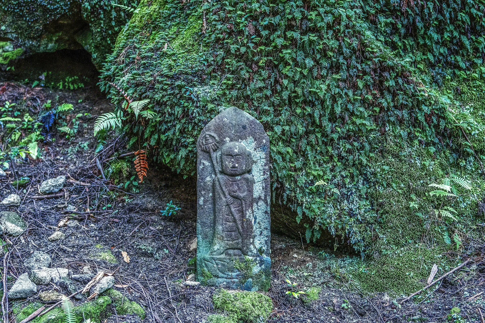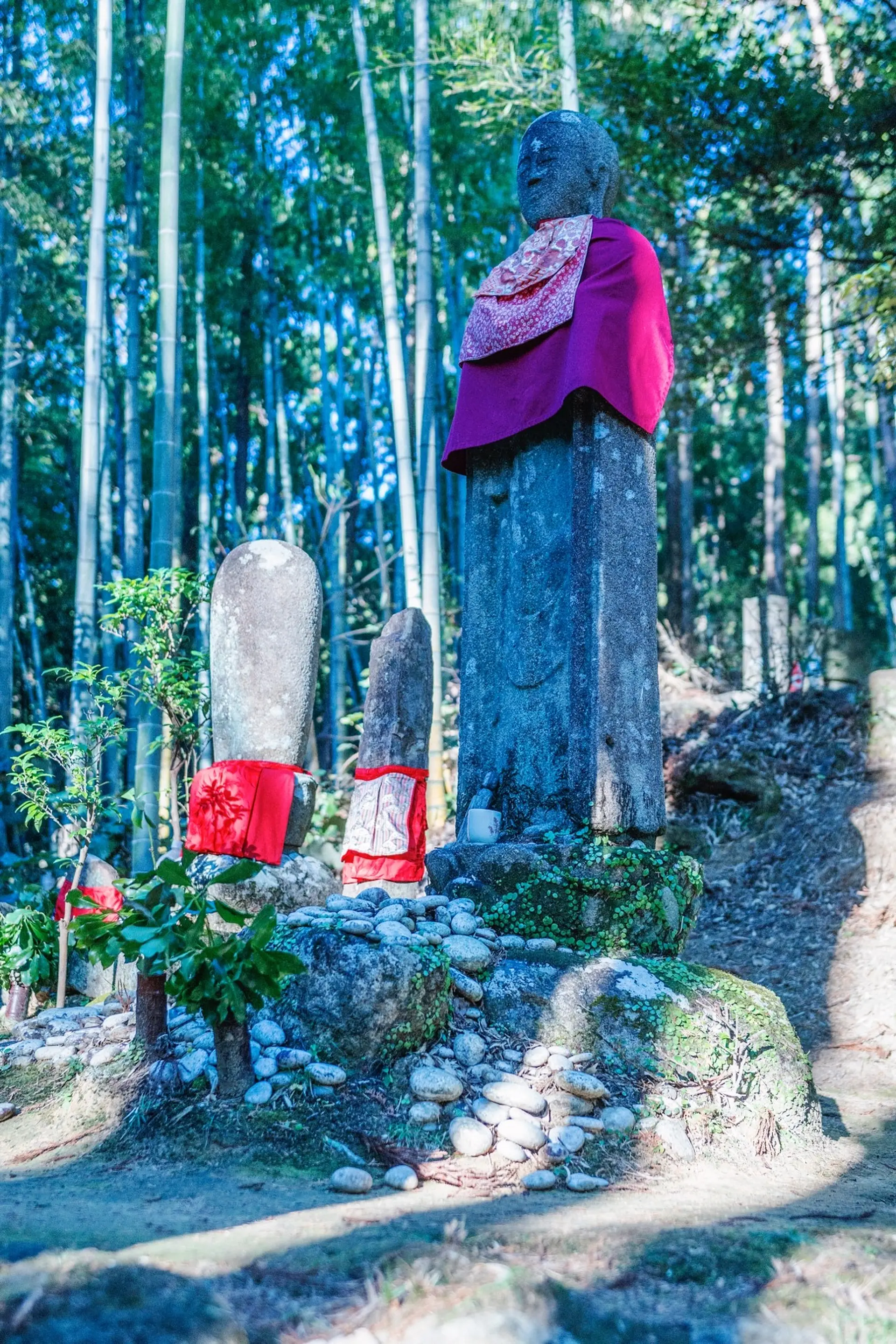石畳や竹林の道のりを楽しんでいると、不意に等身大ほどの大きなお地蔵さんに出会いました。