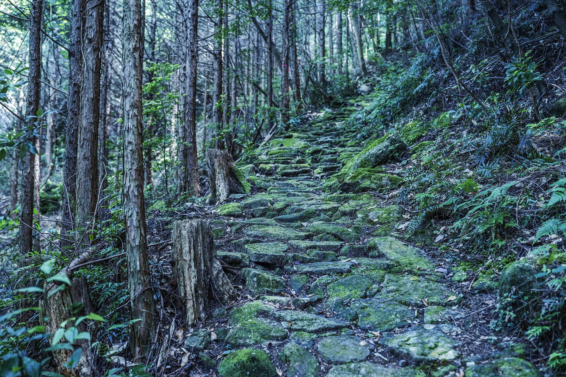 八鬼山越えは、尾鷲市に位置する熊野古道伊勢路の峠道で、「西国一の難所」とも称される険しい道のりが続きます。江戸時代には巡礼者がこの峠を越えて熊野三山へと向かい、道中には巡礼墓碑や町石、供養碑などの歴史的遺構が点在しています。石畳道や七曲りの急坂は、当時の旅人の足跡を今に伝え、峠の途中にある三宝荒神堂や休憩所跡は、巡礼者が一息ついた名残をとどめています。標高が高く険しい道のりですが、頂上付近では熊野灘の美しい海岸線を望む絶景が広がります。歴史と自然が調和するこの道は、かつての巡礼者と同じ体験ができる貴重な峠道です。