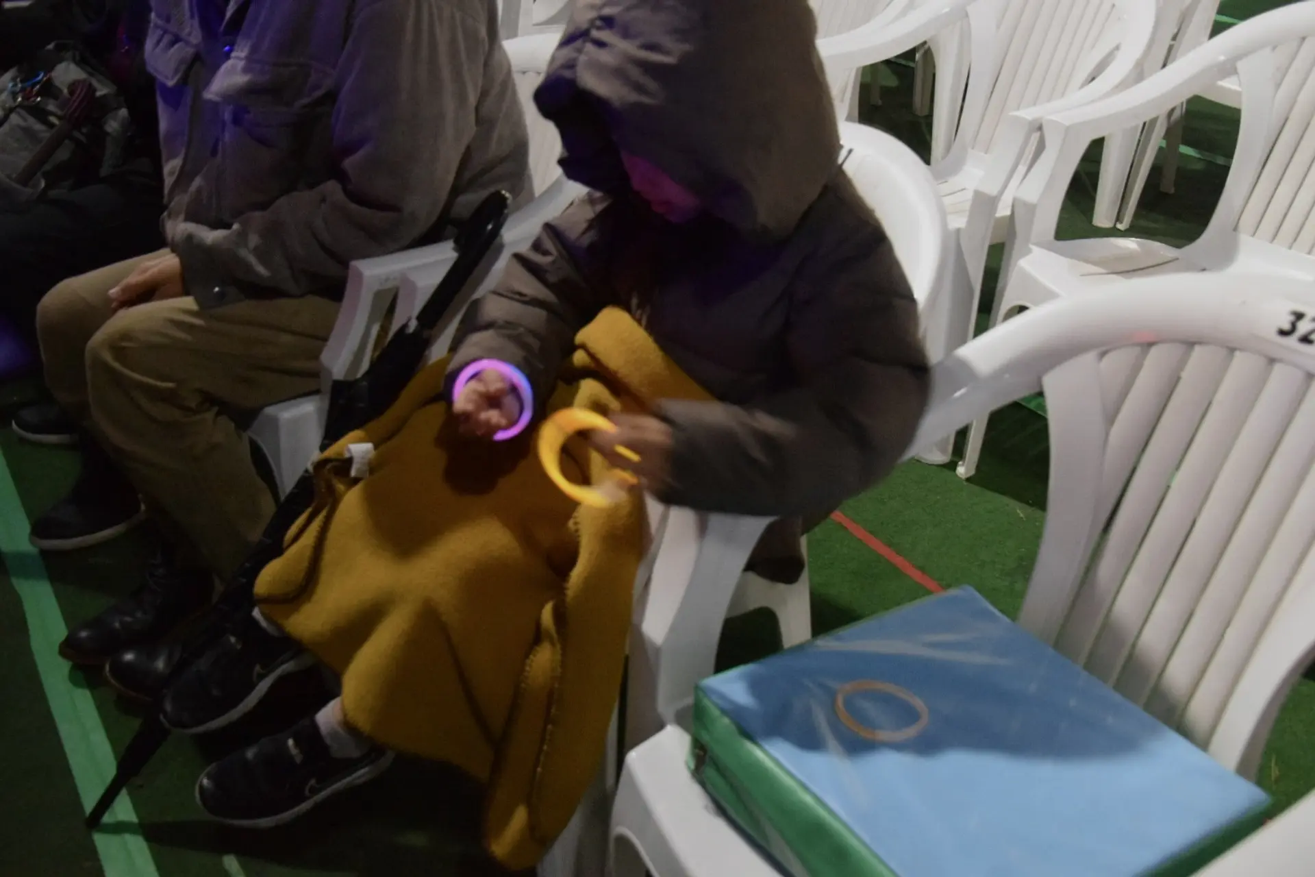 ちなみに我が家は100均の光るアームリングを持参しました。笑