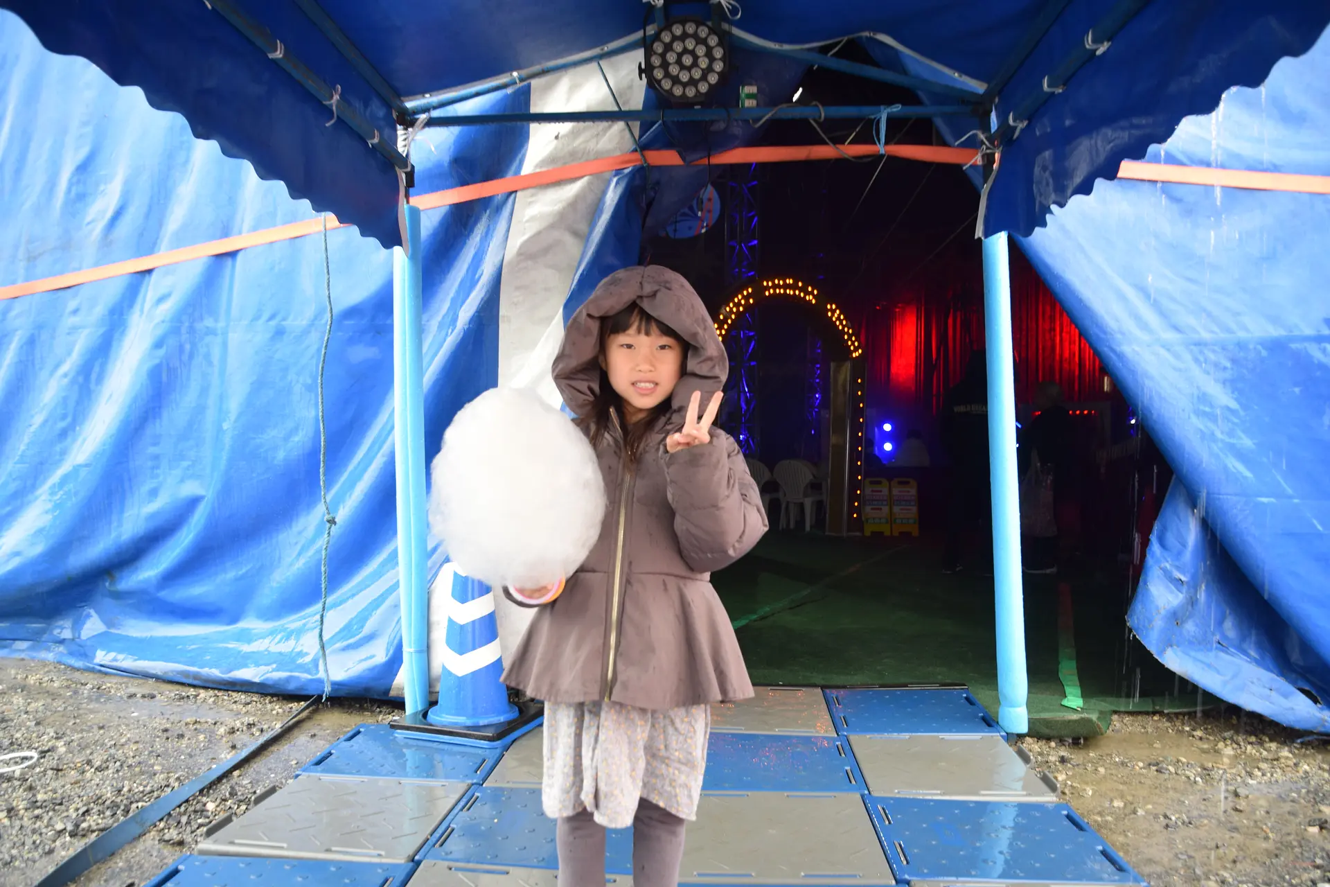 私が訪れた日はあいにくの天気で雨が降っていたのですが、テント内のプレミアム指定席周辺の地面もやや濡れていました。