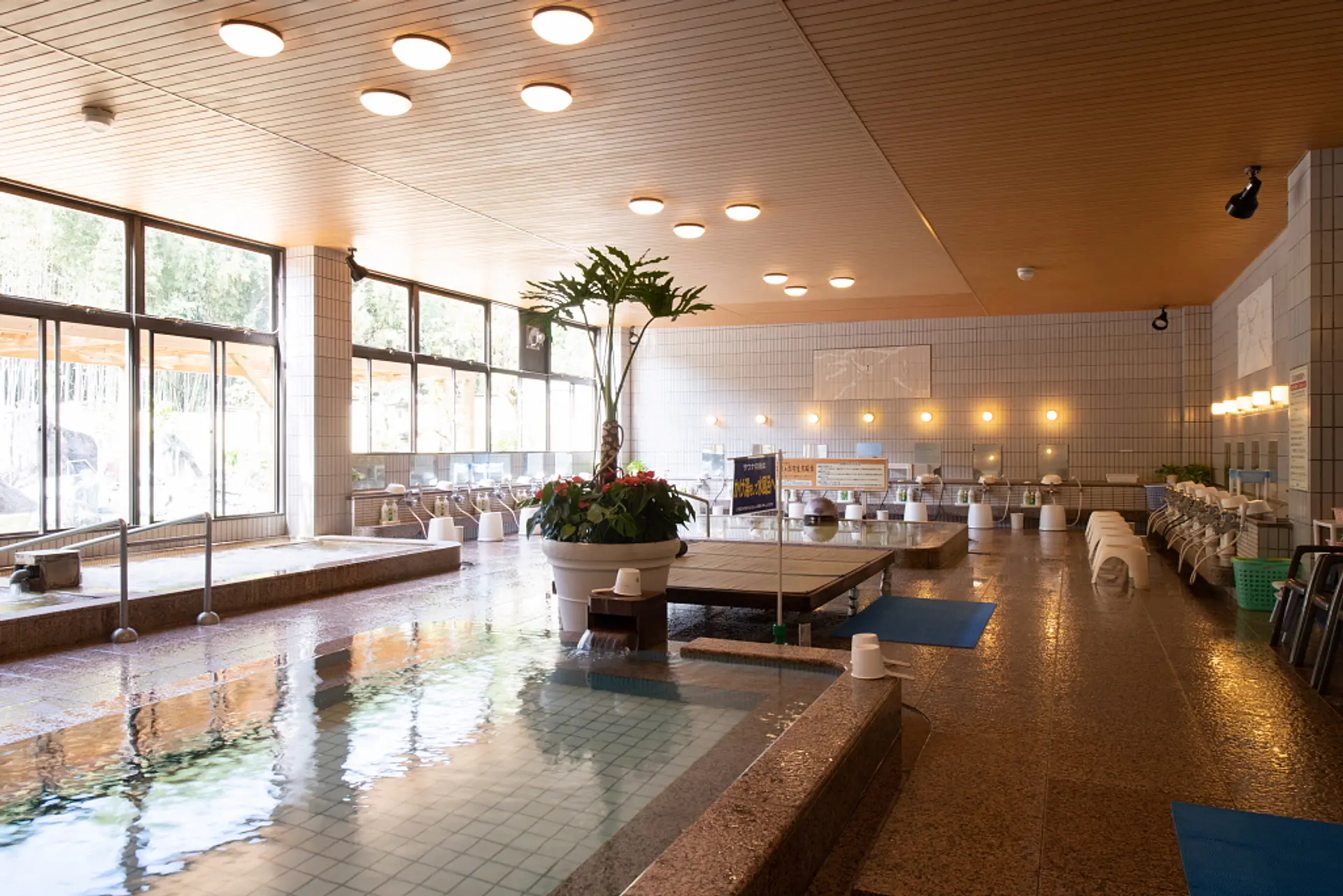 室内浴場も天然温泉。大きなガラス窓に大露天風呂の景色が広がる開放的な空間で、天然温泉の香りをゆったりと楽しめます。炭酸ガスがたくさん溶けた炭酸泉もあり、その血行促進効果はさら湯の約4倍と言われ、またボア効果による代謝促進が期待できます。疲労回復や生活習慣病からくる諸症状の緩和が期待できます。超音波バイブラバスや、10数種類の自然植物に西洋ハーブをブレンドした純漢方薬湯、高温サウナと水風呂もあります。