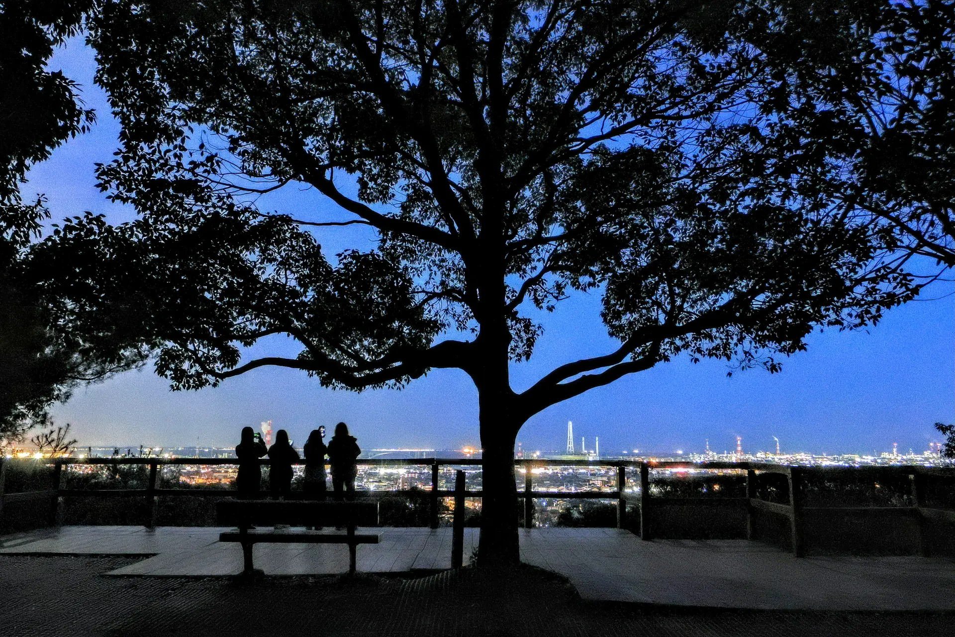| 撮影者コメント | 公園内の展望台からの夜景です。夜景の灯りが、観に来た人達のシルエットを上手く演出してくれています。 |
