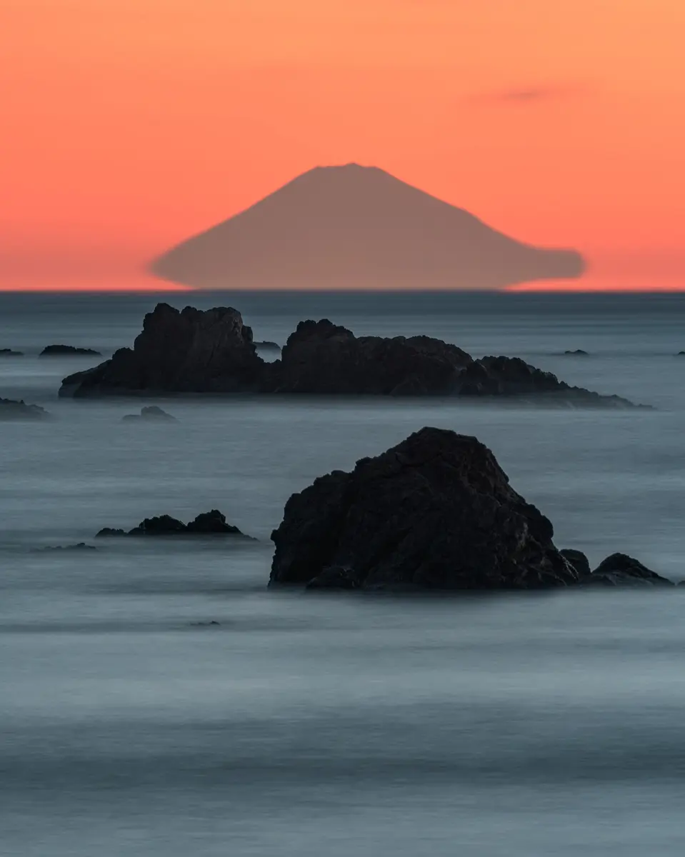 | 撮影者コメント | 鳥羽の海沿いから天気が良ければ富士山が見れる!と聞いて鳥羽旅行の早朝に海へ、、、奇跡的にもくっきりした富士山を拝むことができました。 |