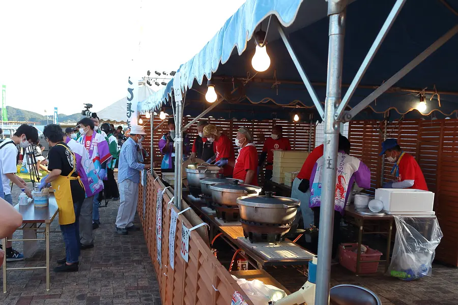 また、会場には、名物の伊勢えび長寿汁など、地元の屋台テントも多く出店され、たくさんの方で賑わいます。