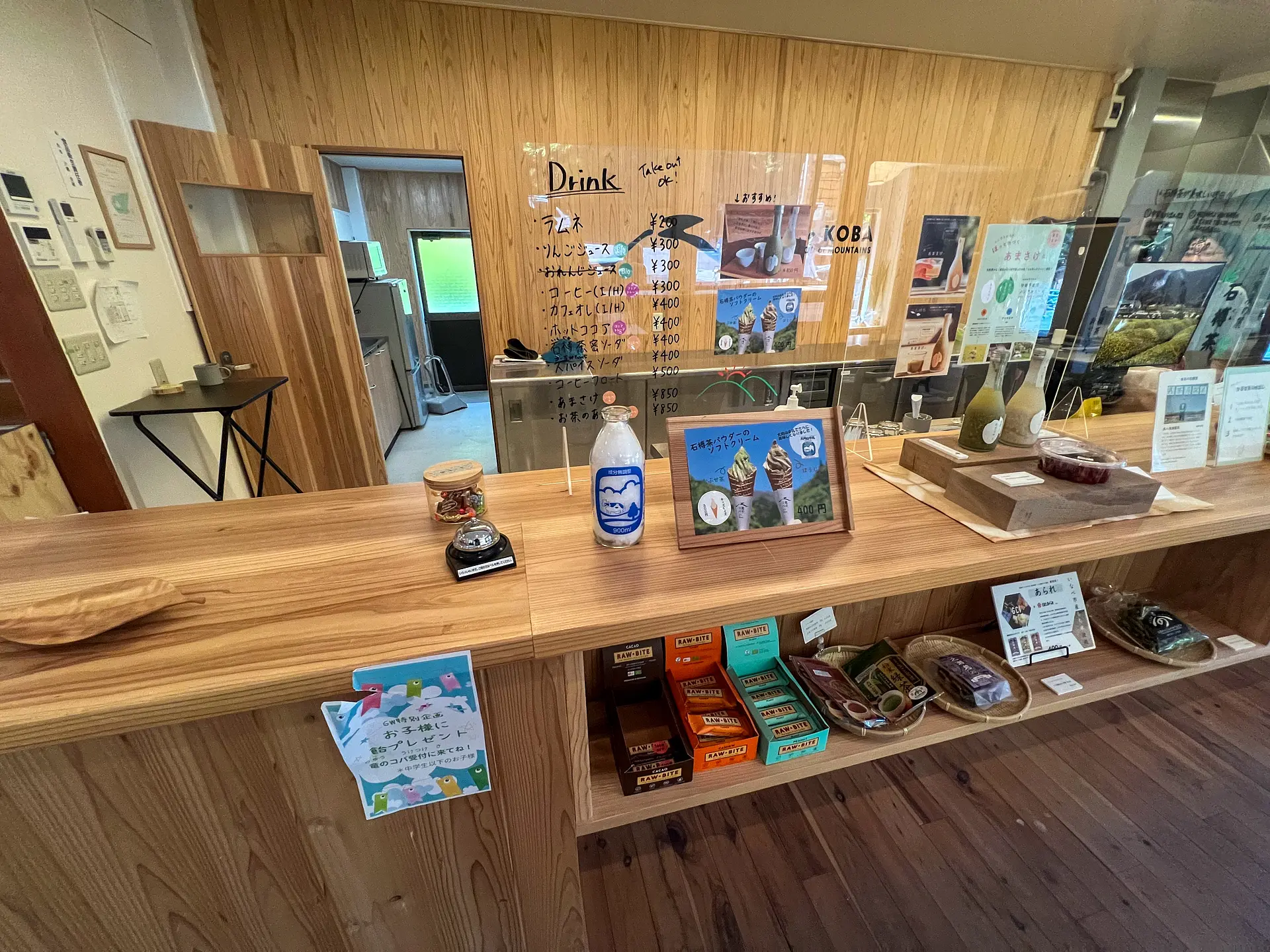 カフェスペースでは、地元の特産品である石榑茶を使用したドリンクやソフトクリームをいただくことができます。