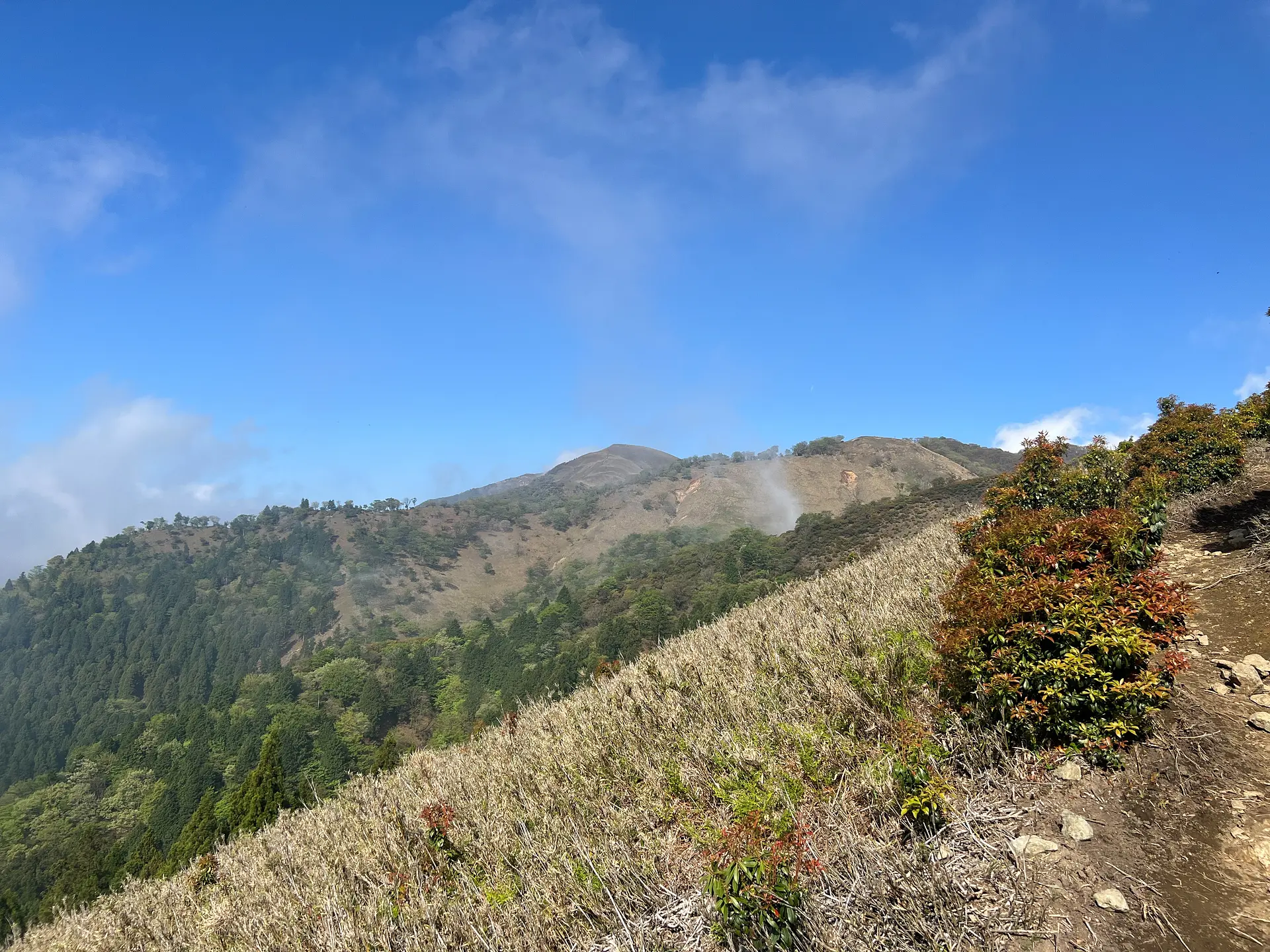 樹林帯から出てすぐの尾根は一部道が狭くなっているため、通る際は注意してください。