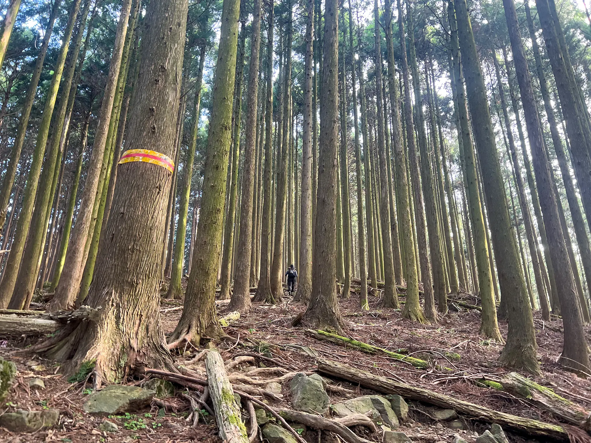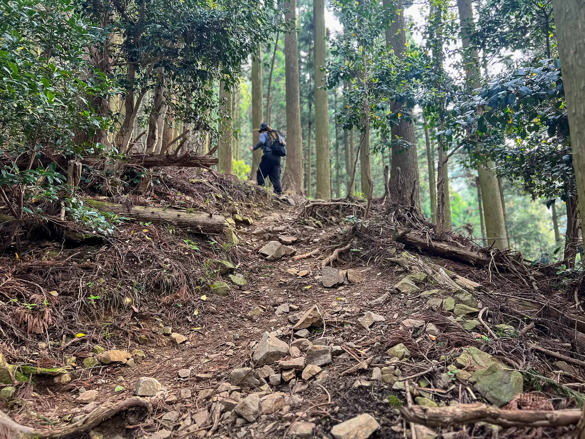 遠足尾根登入口からしばらくの道は、急な斜面が続きます。