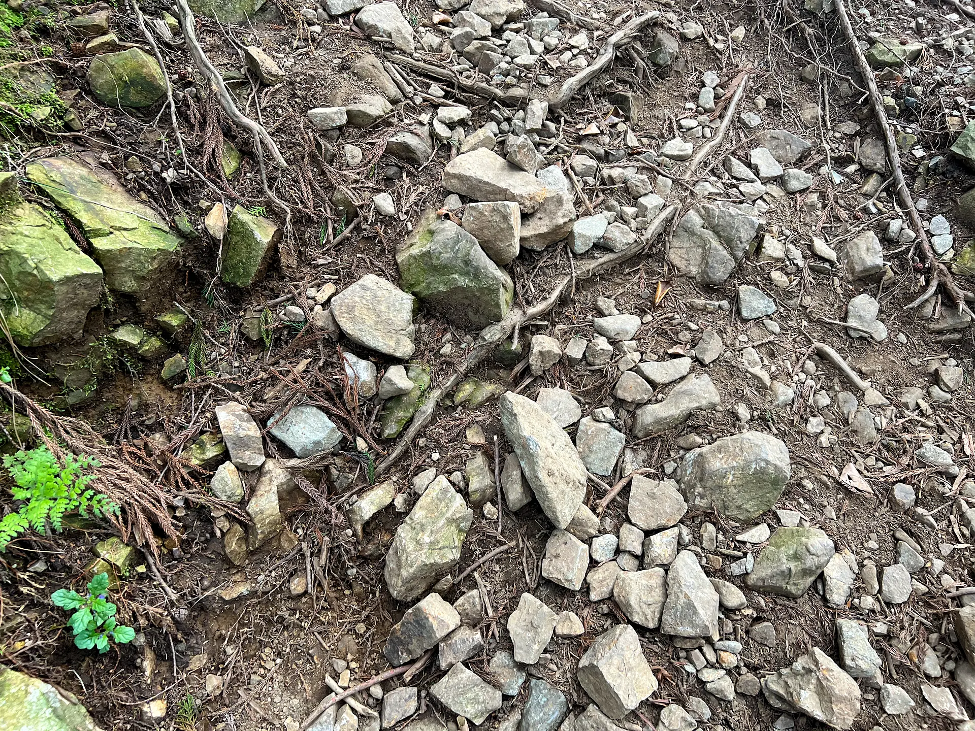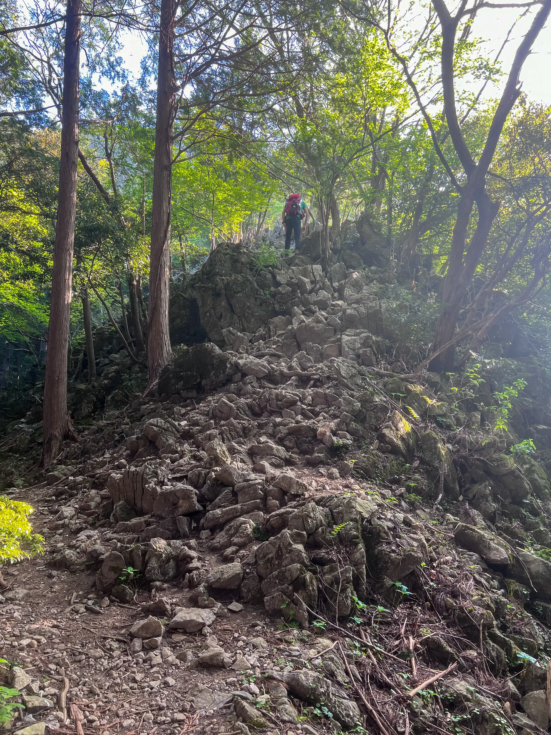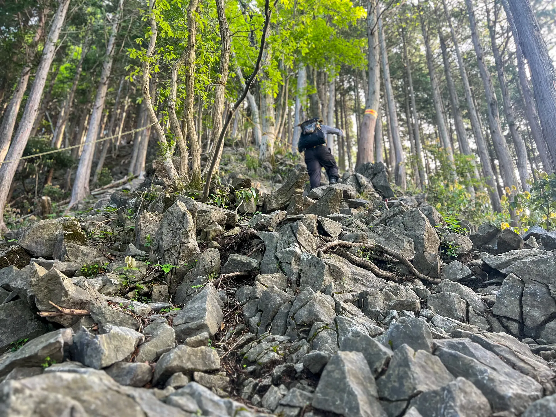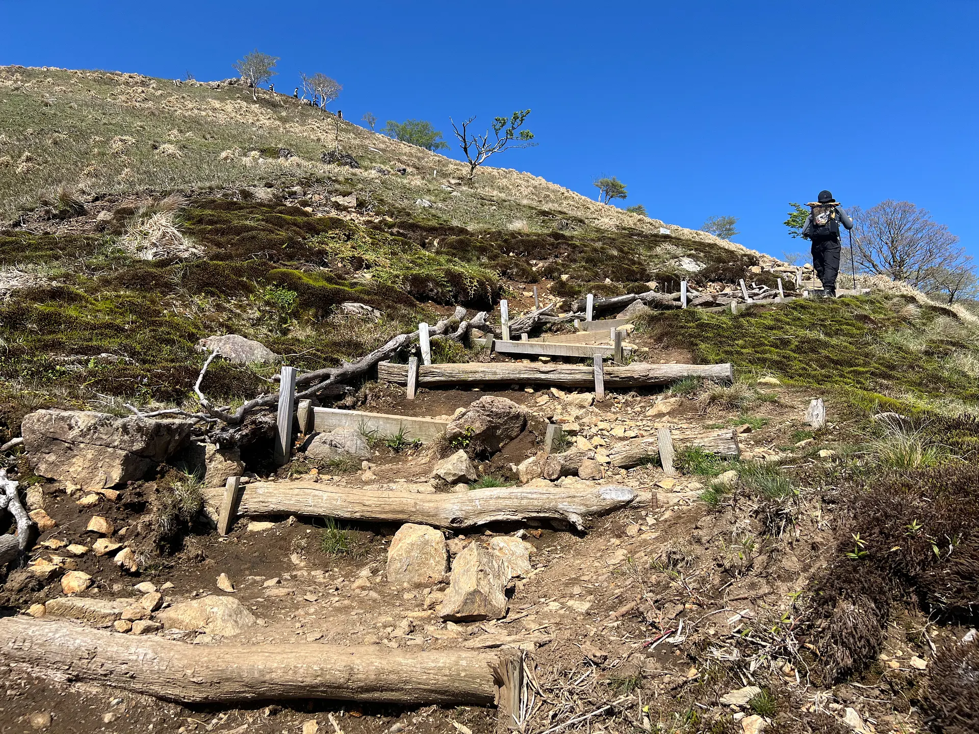 急な斜面が続きますが、時おりなだらかな場所がありますので、休憩がてら進みましょう。休憩時には、他の登山者の方の道を塞がないように、場所の配慮をして休憩しましょう。