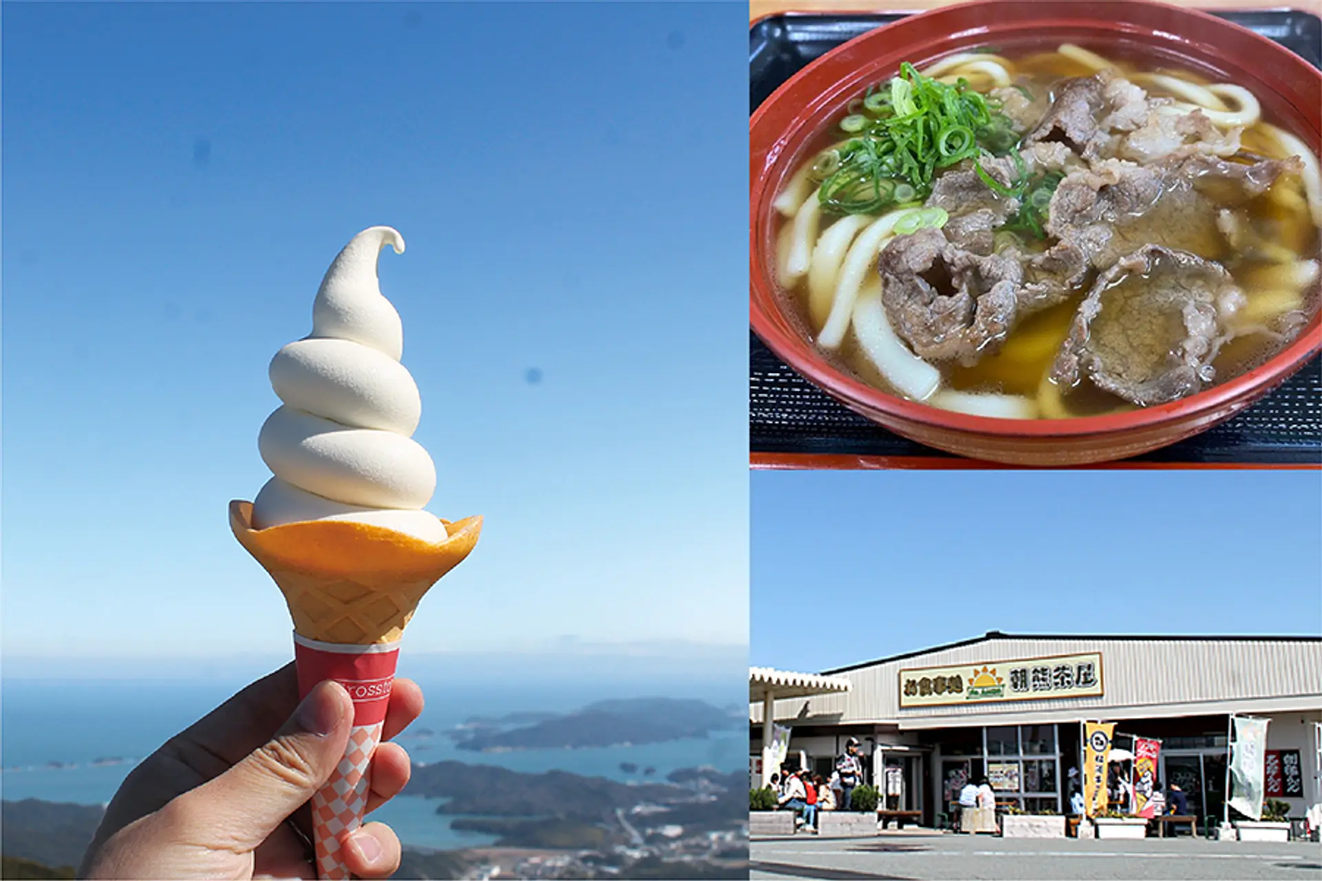 - 料金:天空ソフトクリーム400円、松阪牛肉うどん900円