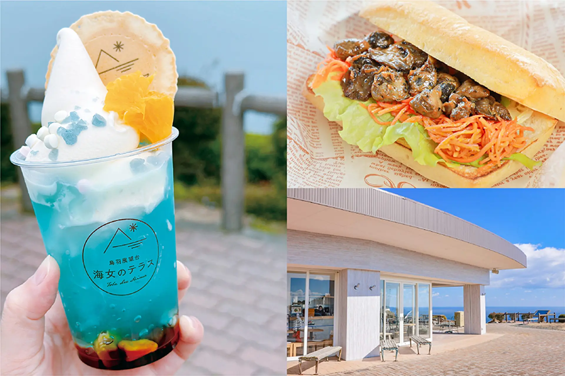 - 料金:海女のテラスパフェ(夏)1,080円、とばーがー認定の浦村牡蠣のアヒージョサラダサンド1,380円