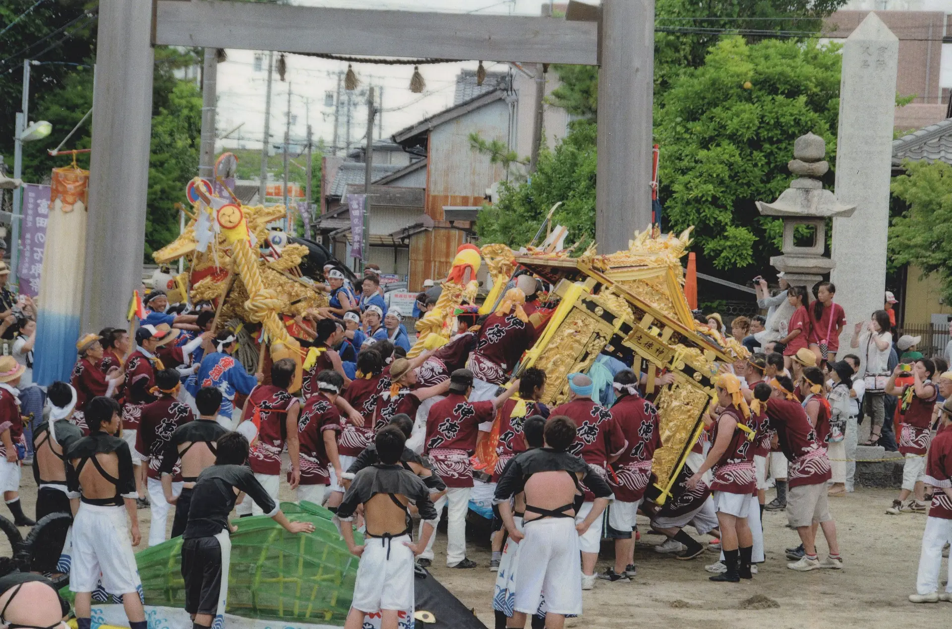途中、鳥居を挟んで次の組との間での駆け引きが妙です。最後には、唄と太鼓を叩きながら、輪になってぐるぐる回る踊り等しながら、神社に行事が無事終了したお礼の宮参りを行ってすべての行事を終えます。