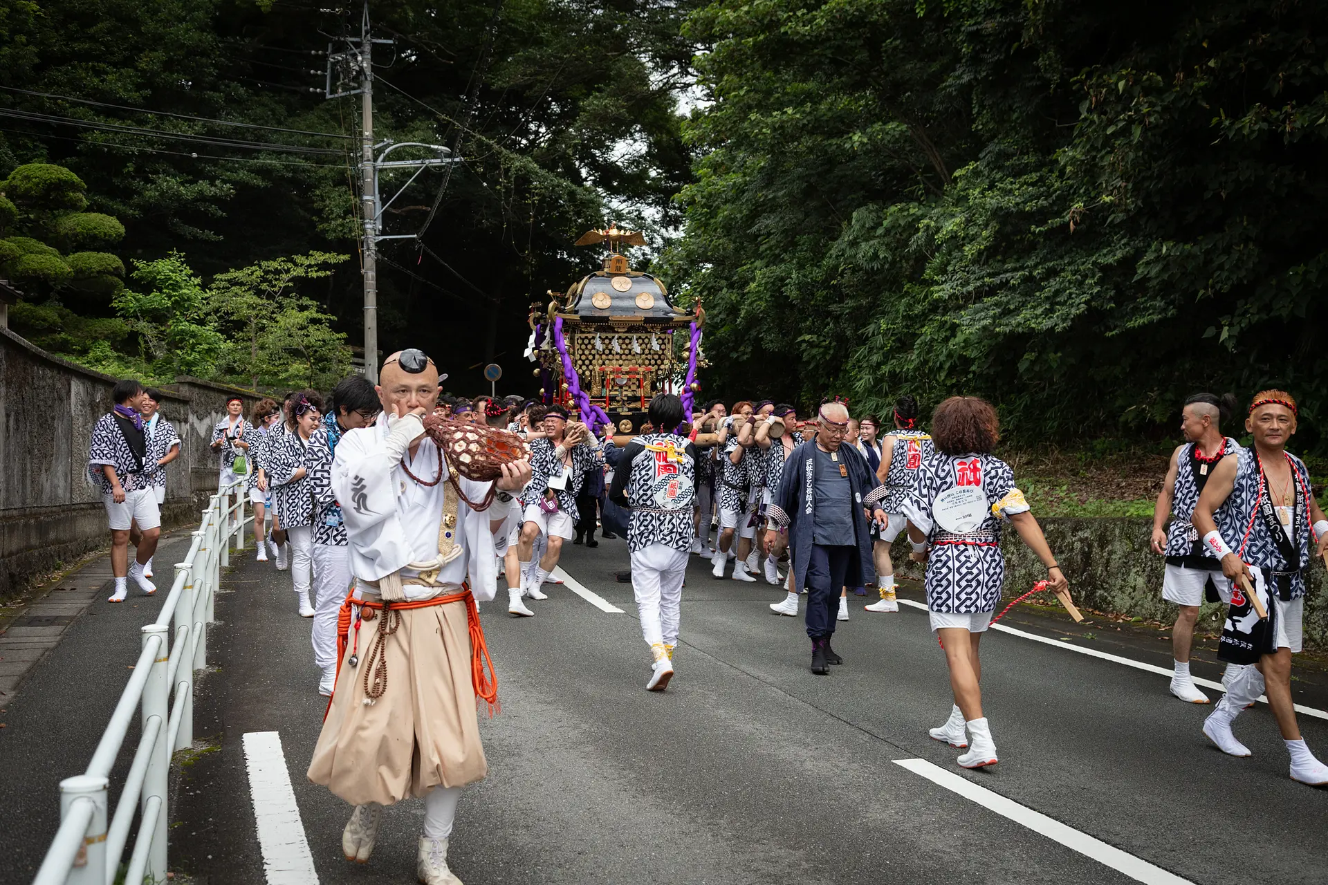 ・大きな竹飾りを運びながら祭衆は登山をします。危険を伴いますので祭衆の近くで登山するのはお控えください。