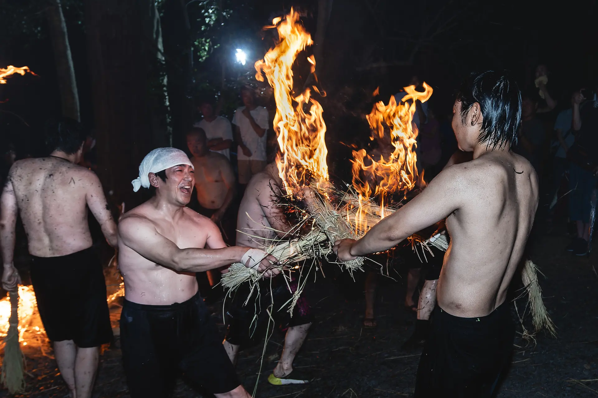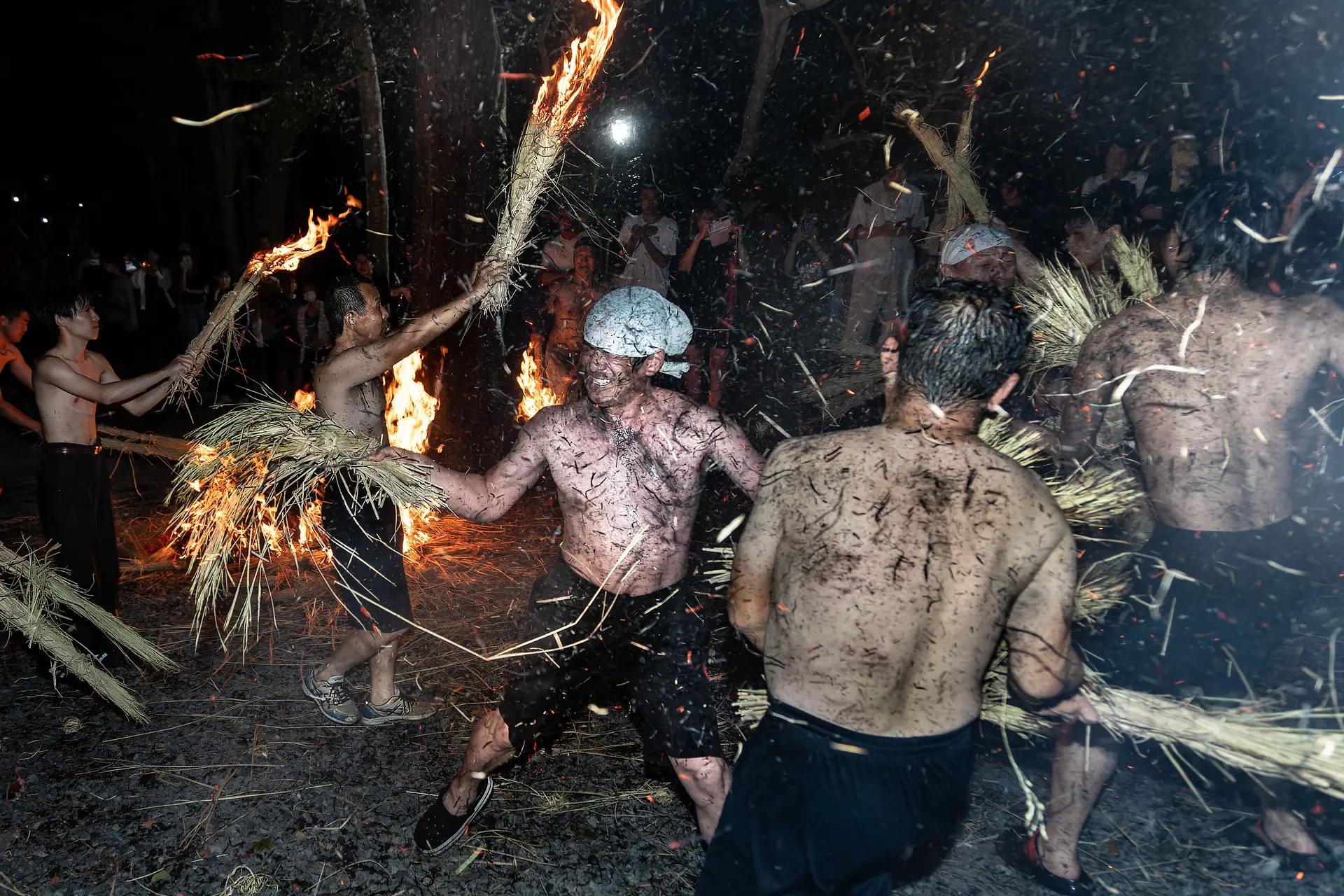 ※観客目の前で叩き合いが繰り広げられます。火の粉や松明の一部が飛び散ったりしますので近づきすぎないようにしましょう。