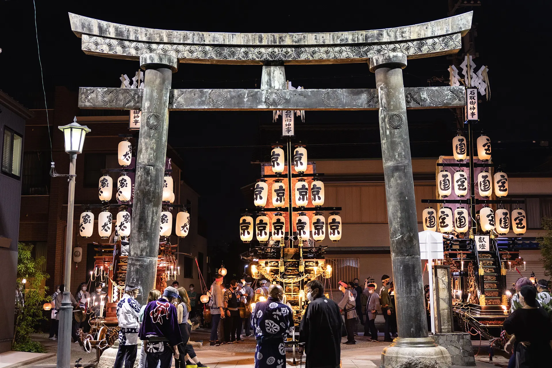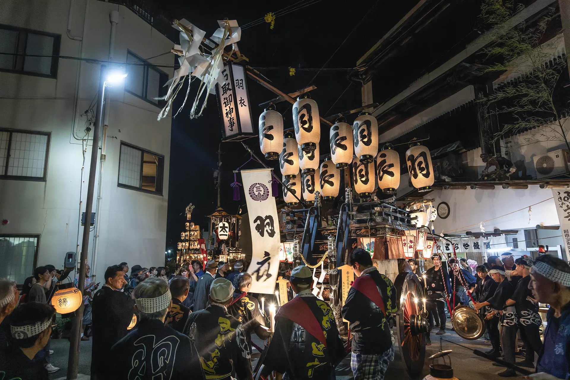 夕方(18:00頃)から試楽が始まり23:00まで町練りが行われます。
