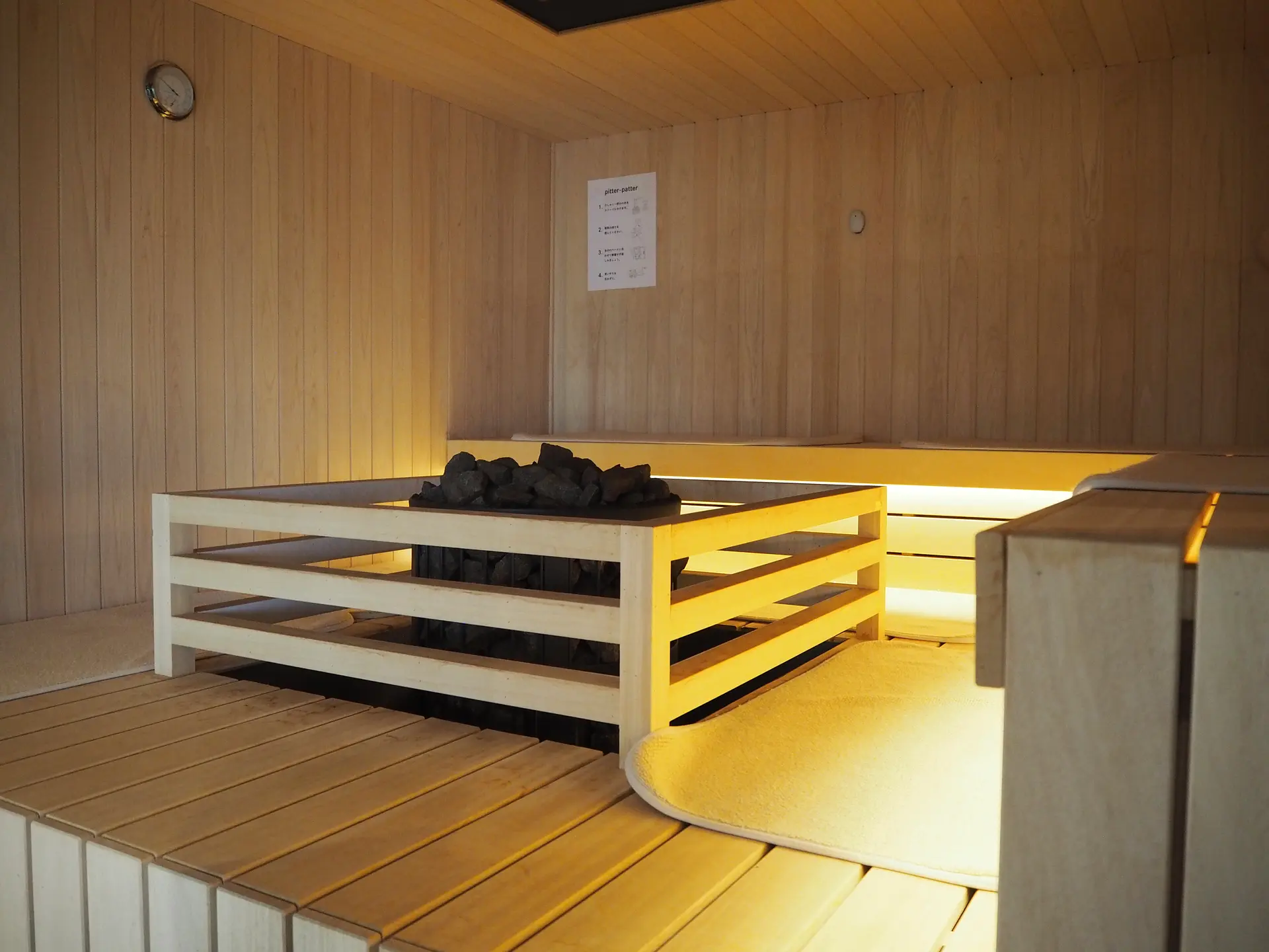 15分に1回自動でロウリュされ、定期的にスタッフの熱波イベントが開催されます。