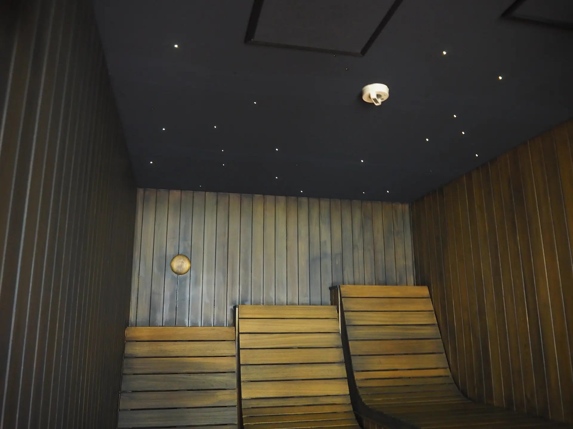 他のサウナよりも暗く、星をイメージした天井があり、まるで星空の下にいるかのよう。心も体もリフレッシュです。
