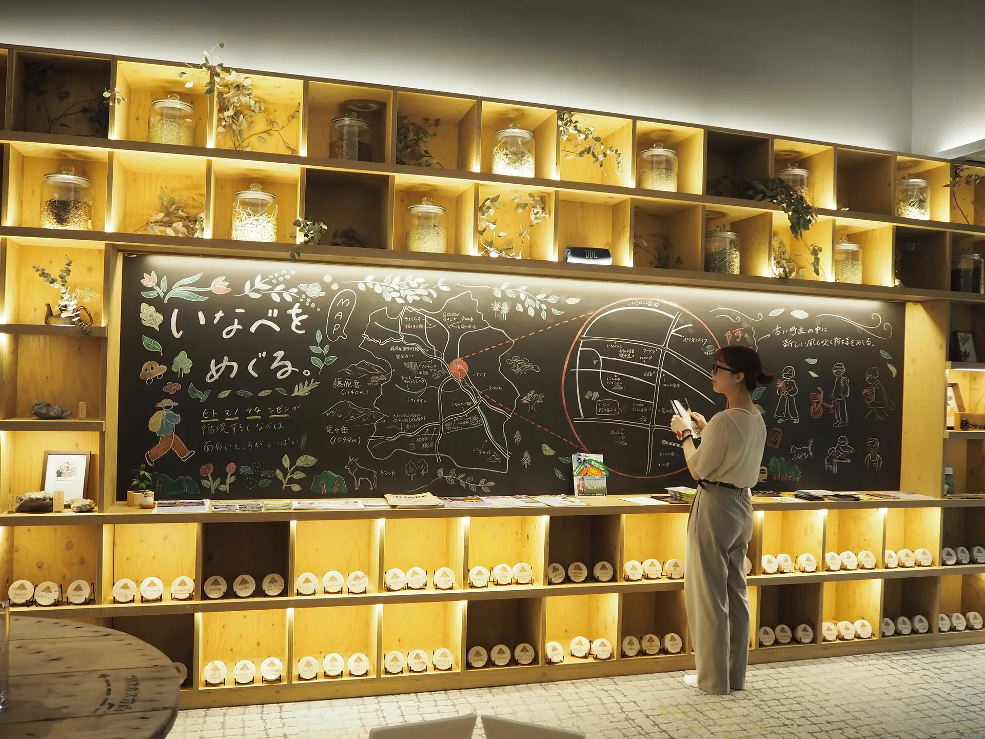 温かく迎え入れてくれる入口には、一目で分かるいなべ市のマップが手書きで書かれています。