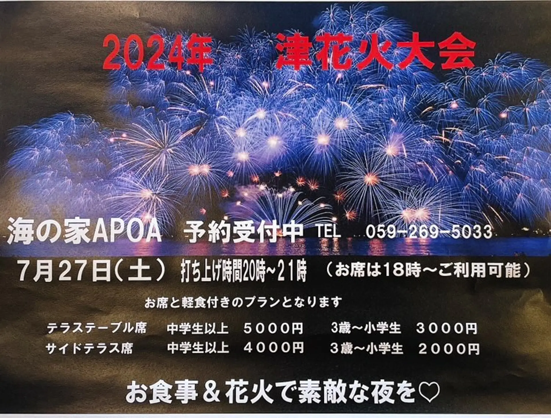 ・津花火大会 7月27日㈯ 花火大会終了まで営業
