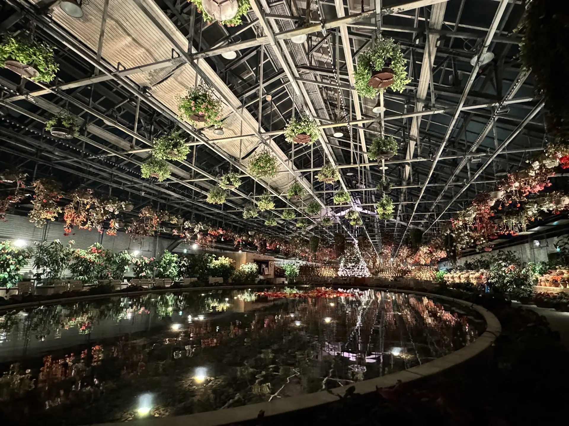 ベゴニアガーデン内では期間限定でこの夏の夜に特別演出を行っています。最新LEDとプログラムで音楽と光の演出がなんとも幻想的な空間が広がっており、「里の夏あかり」期間限定でサンバやサルサ、ハワイアンミュージックなど軽快な音楽が流れており、あわせて花も美しく踊っているようでついついリズムにのって楽しめちゃいました。大切な人との夜に美しく咲く花々と光と音の演出を味わってみてください。出口側からはベゴニアとツリーの両方が池に映り込み、最高の景色を見ることができます。