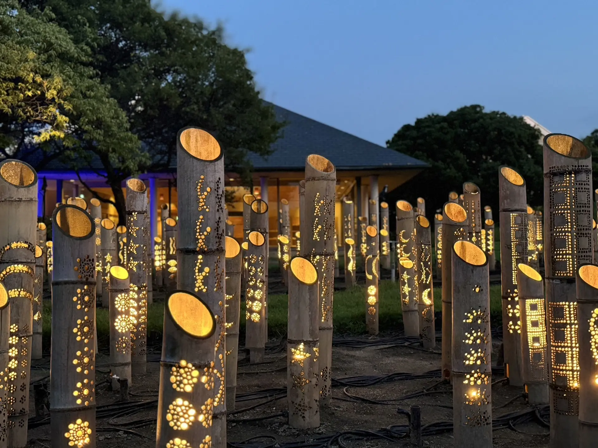 沢山の竹灯籠のあかり。