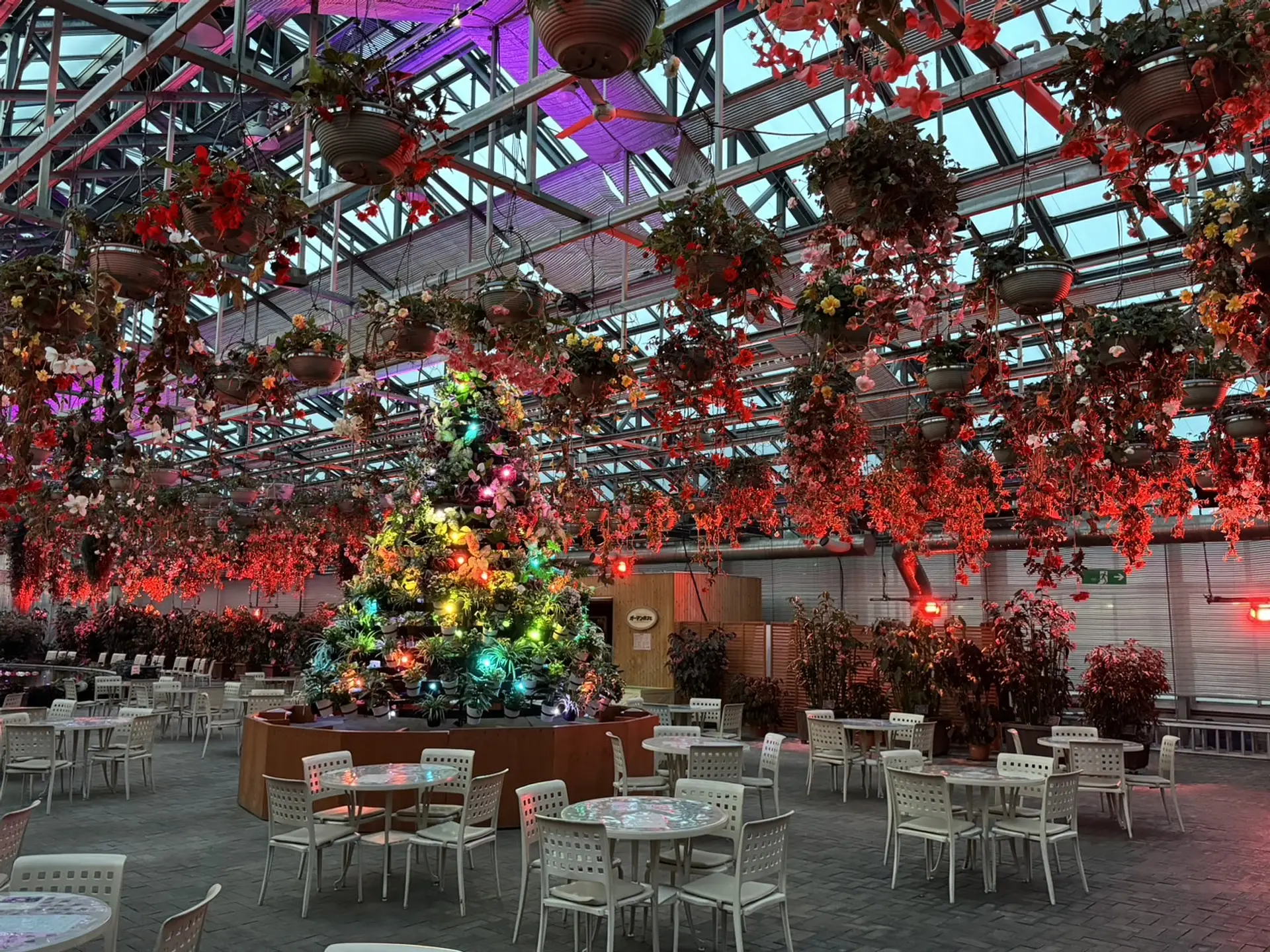 注目するところは色鮮やかな約300鉢の花々で作られた高さ5mほどの華やかなツリー 。カラフル過ぎる世界が体験できベゴニアの花はとても綺麗。周りの樹木たちも色鮮やかに変わりゆくライトアップが幻想的で思わず「すごい」って声が出てしまいますよ。ツリーの周りには座って見られるように椅子もありゆったりと眺めることができます。ベゴニアガーデン内は夏でも空調管理がされており涼しいので夏におすすめスポットです。
