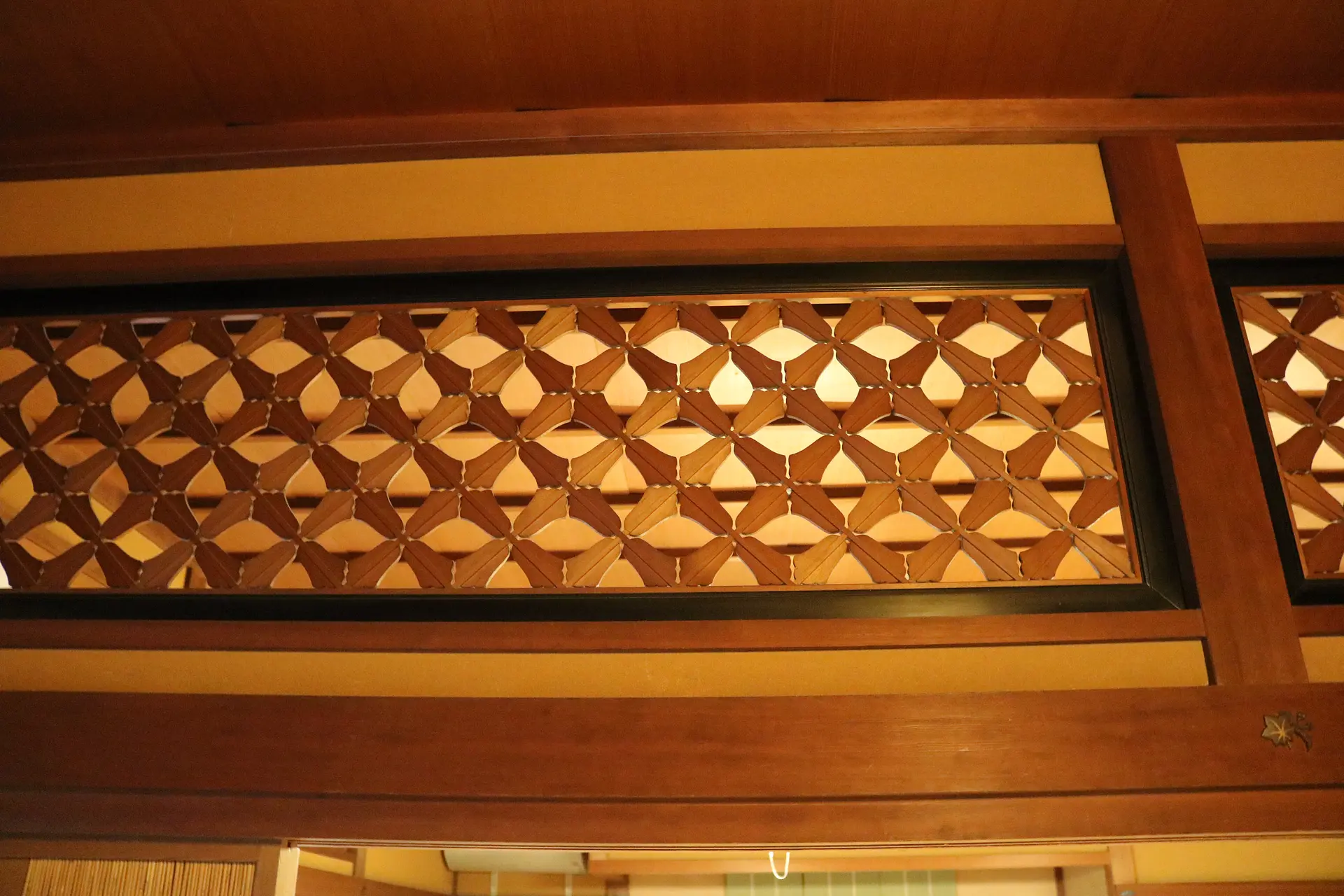 大正座敷にあるこの欄間(らんま)も上品で素敵なのですが、とても高度な手作業でつくられた幻の欄間なのです。