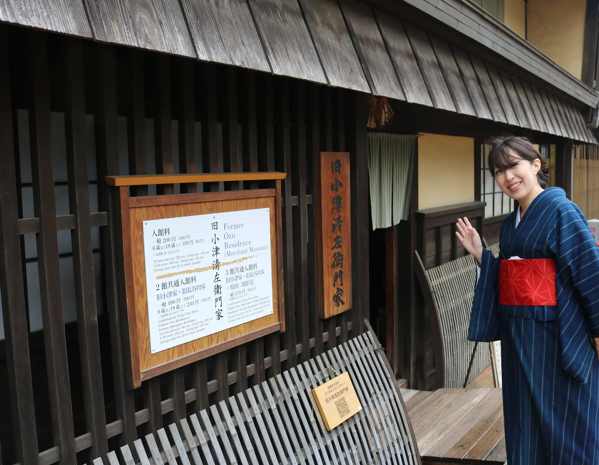 旧小津清左衛門家は紙と木綿の商売で大きな成功を収めた松阪商人・小津清左衛門の生家。1653年(承応2年)に江戸の大伝馬町で「小津屋紙店」を創業し、その後、隣に「伊勢屋木綿店」、向かい側に「大橋屋紙店」を開業。