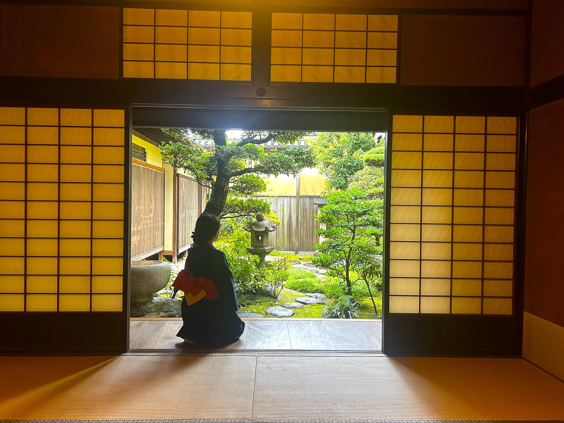 中庭もあり、ここで写真を撮ると風情があって素敵です。雨の日は残念と思いがちですが、実は一番庭がきれいに見えるのは雨の日なんですって。取材日は雨でしたが、石が雨に濡れ、緑が映えて、本当に美しかったです。
