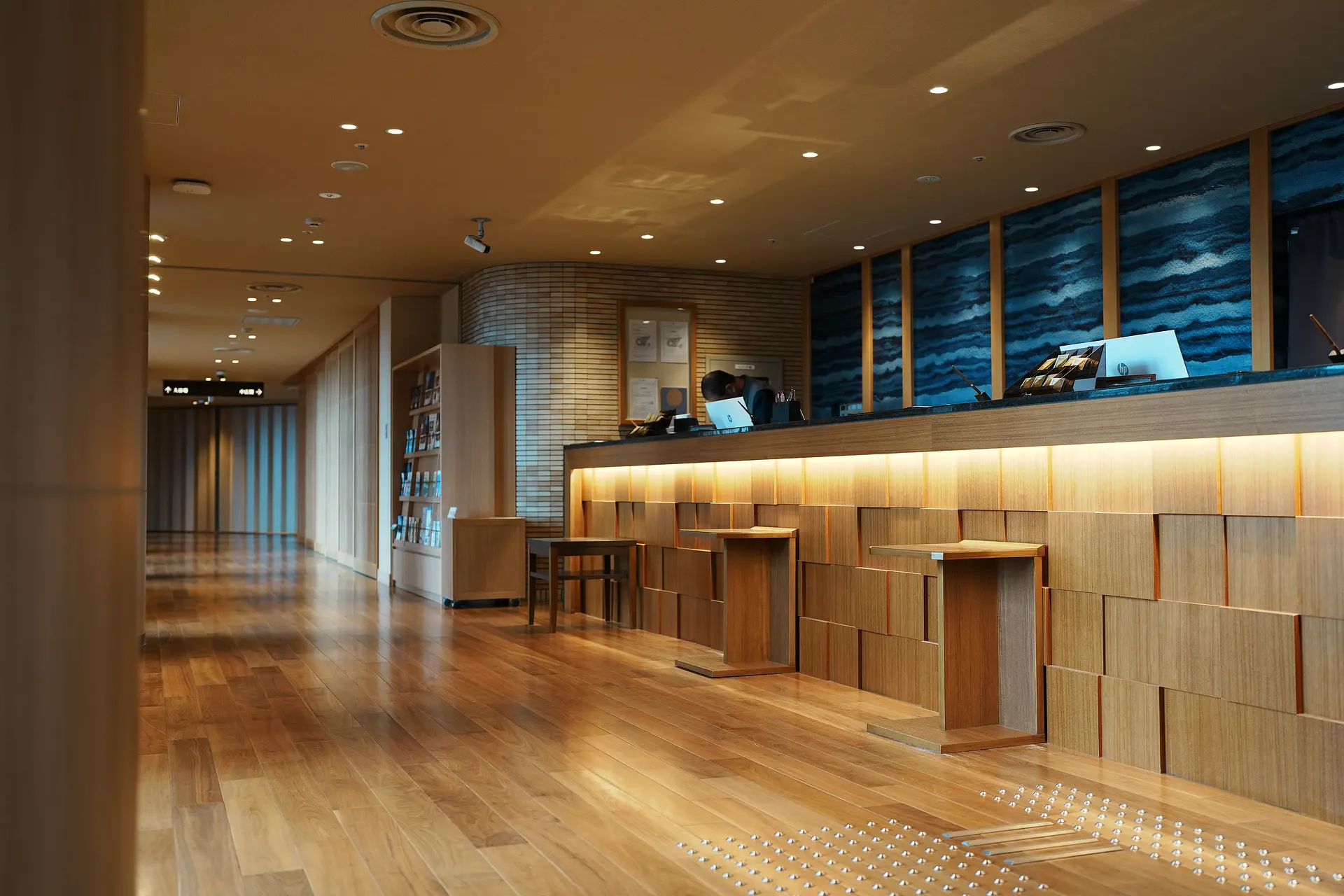 ロビーには大きな窓が一面にあり、自然光がロビー内を照らしてくれます。