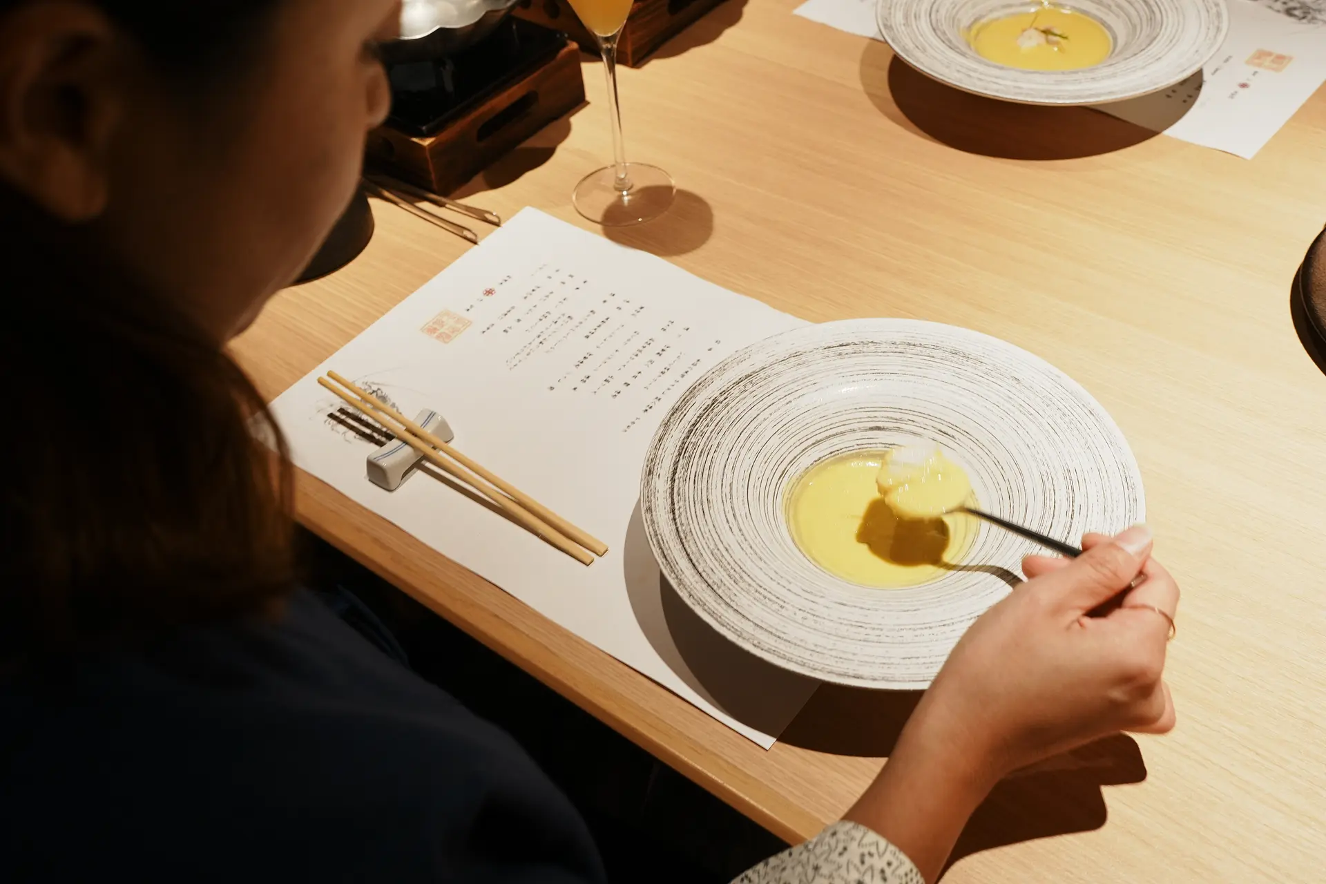 蒸した伊勢海老が入っており、冷たいコーンクレーマにぷりぷりの伊勢海老がとても合います。