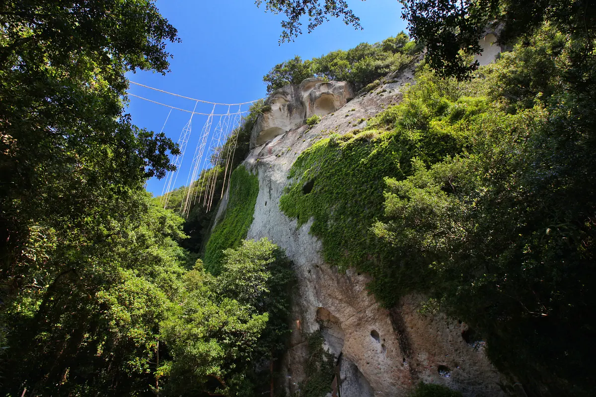 鬼ヶ城は、地震による地盤の隆起や波の浸食によって造られた大岩壁です。