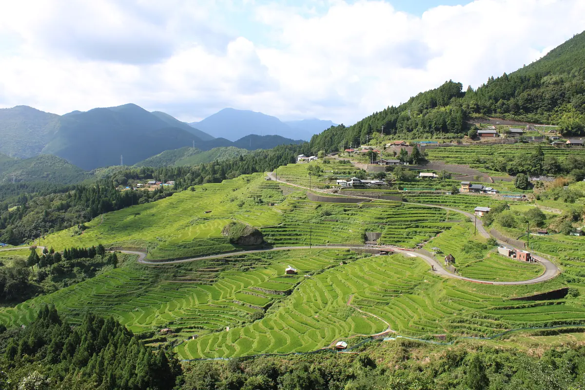 道の駅から車で15分ほどの距離に、日本最大規模を誇る棚田「丸山千枚田」があります。田んぼの数はなんと1,340 枚!日本の棚田百選に選ばれています。丸山千枚田がいつ頃造成されたかは不明ですが、西暦1601年(慶長6年)には 2,240 枚もの田があったという記録が残っています。