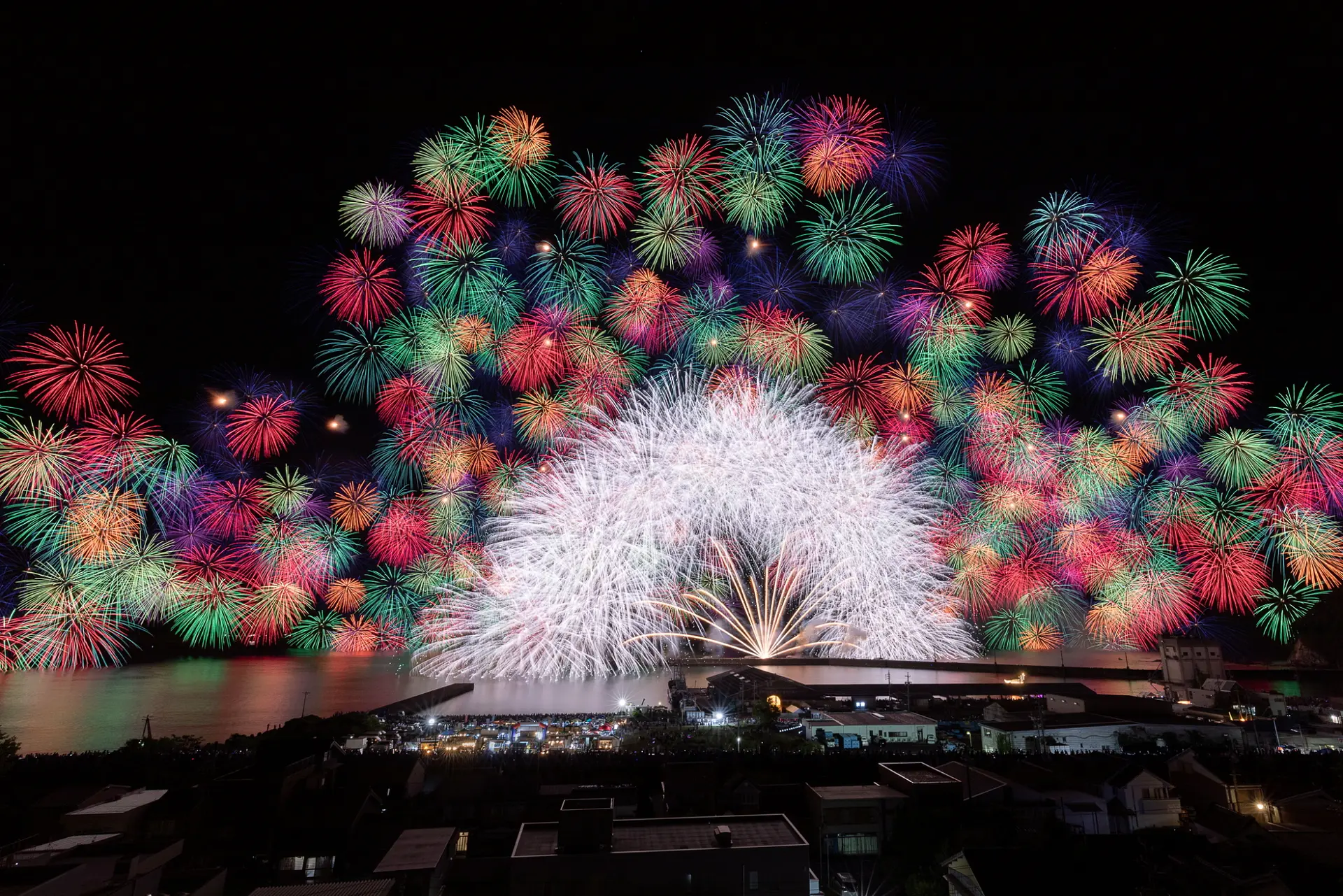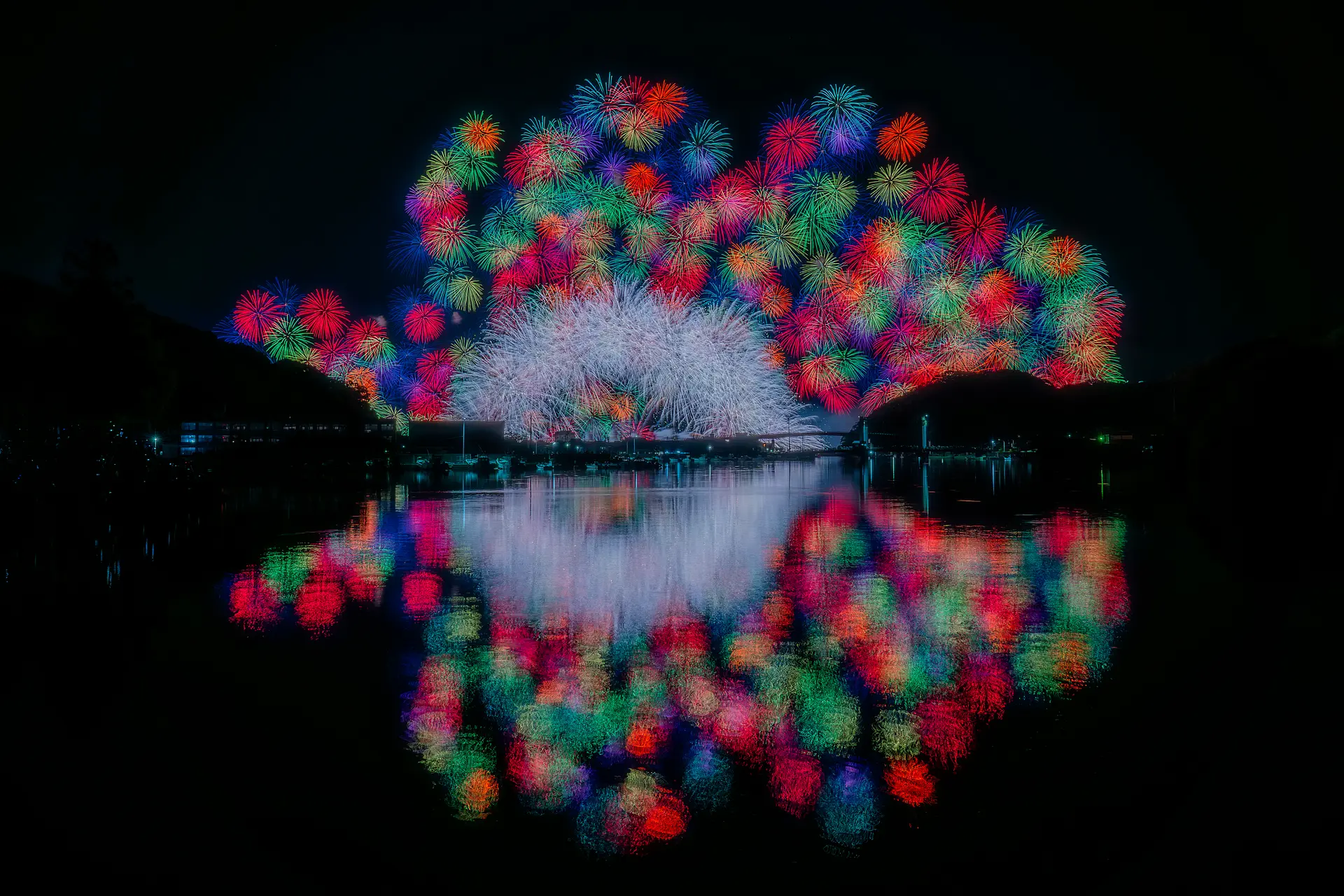 | 撮影者コメント | きほく燈籠祭で有名な『彩雲孔雀千輪』が撮りたくて、去年初めて花火大会に足を運びましたが残念な事に大惨敗に終わり、来年こそは必ず撮る!と決意を新たに今年も参加しました。酷暑の長丁場を耐え抜き、無事に大満足のいく彩雲孔雀千輪をカメラに納めることができました。 |