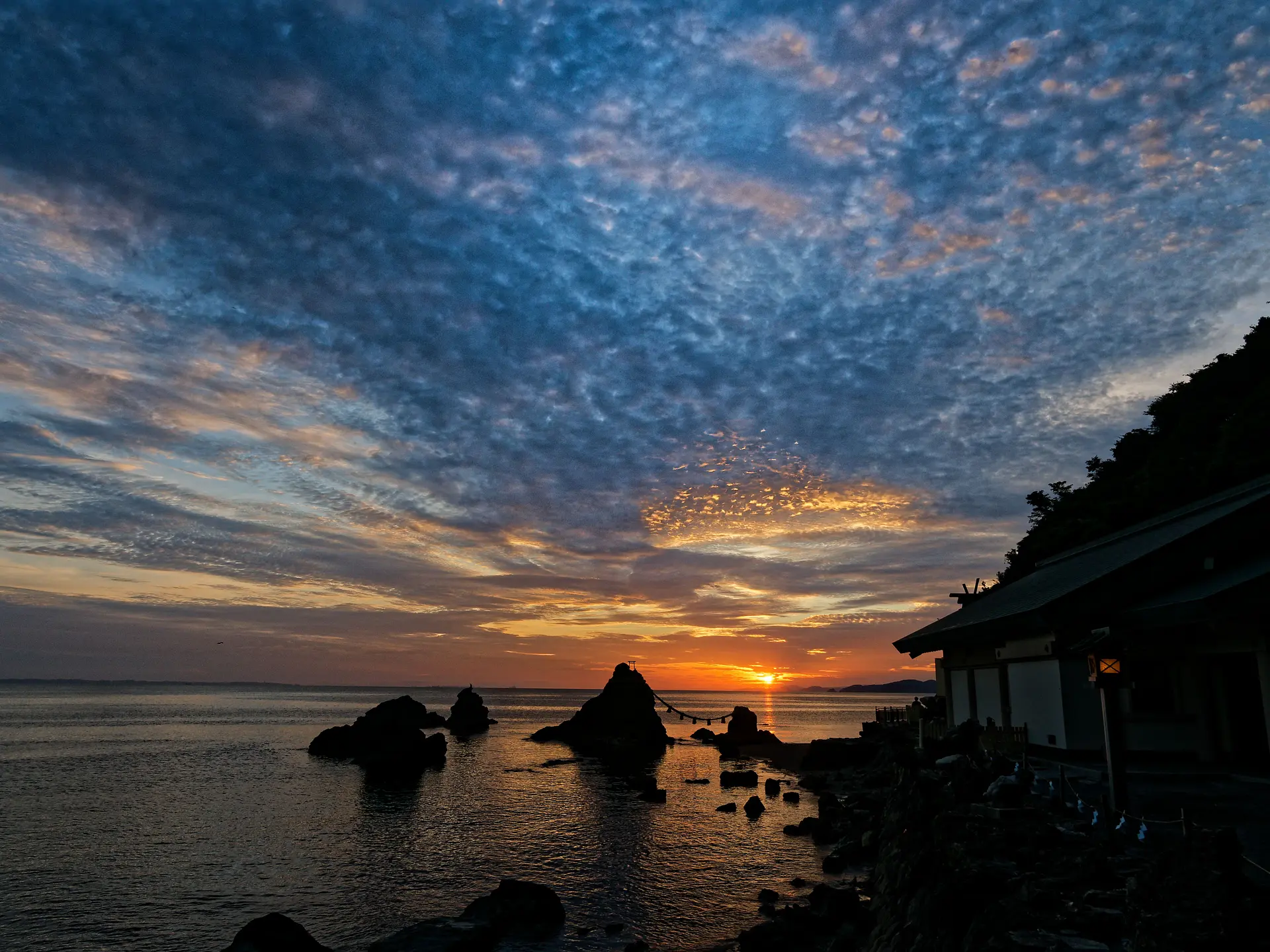 | 撮影者コメント | 夫婦岩の日の出を撮ろうとしていました。思いがけず、雲と朝焼けの神々しい日の出を撮ることができました。 |