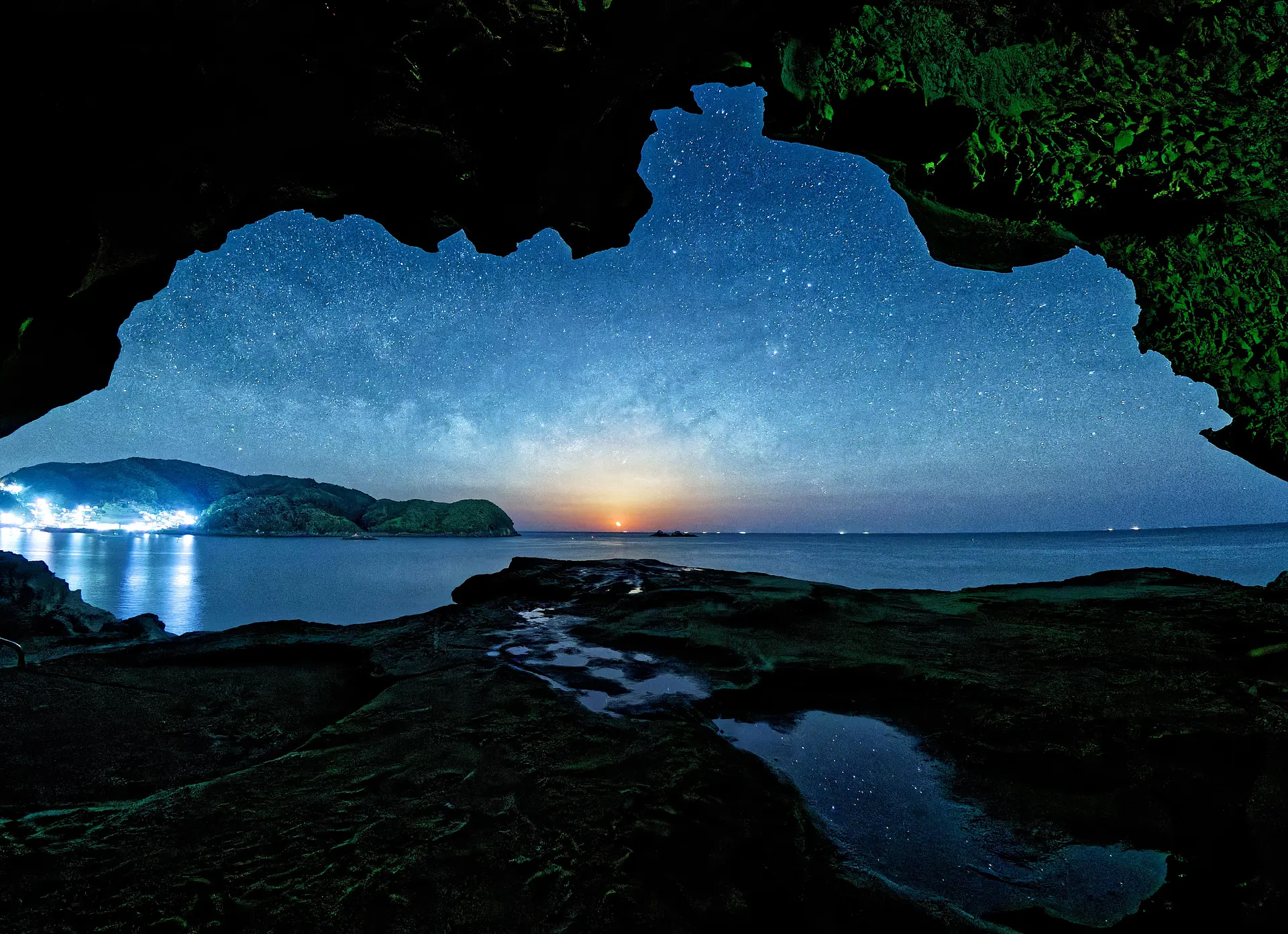 | 撮影者コメント | 鬼ヶ城で天の川を撮っていると月が上りはじめ、あっという間に天の川は消えていきました。 |