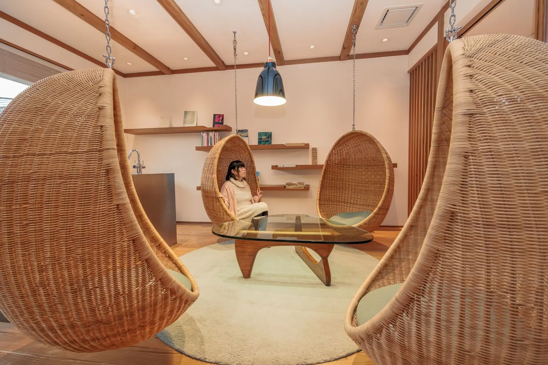 特に、真ん中の部屋には天井から吊り下げられた椅子があり、そこに座ると普段とは違った新鮮な気分に浸れること間違いなし。