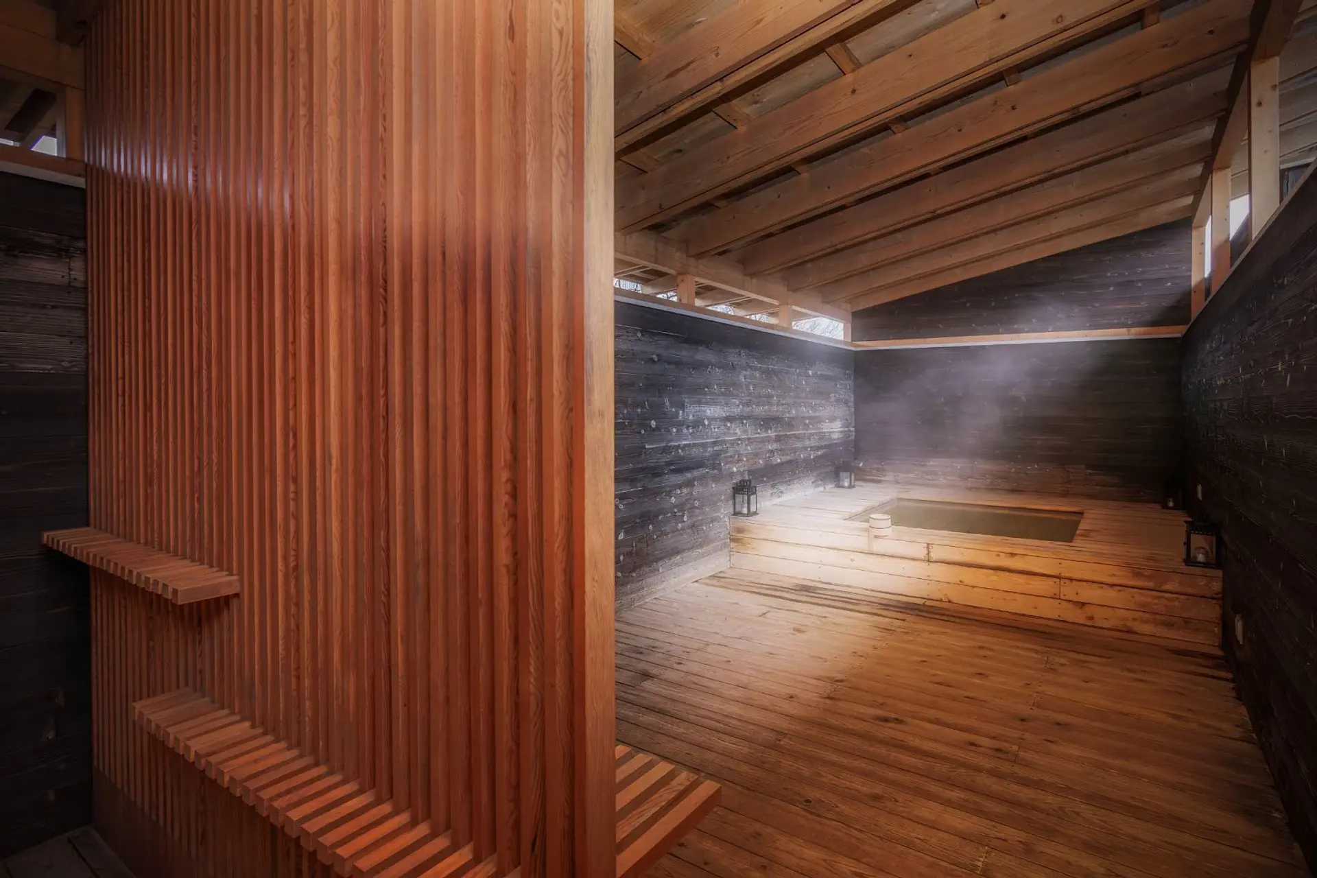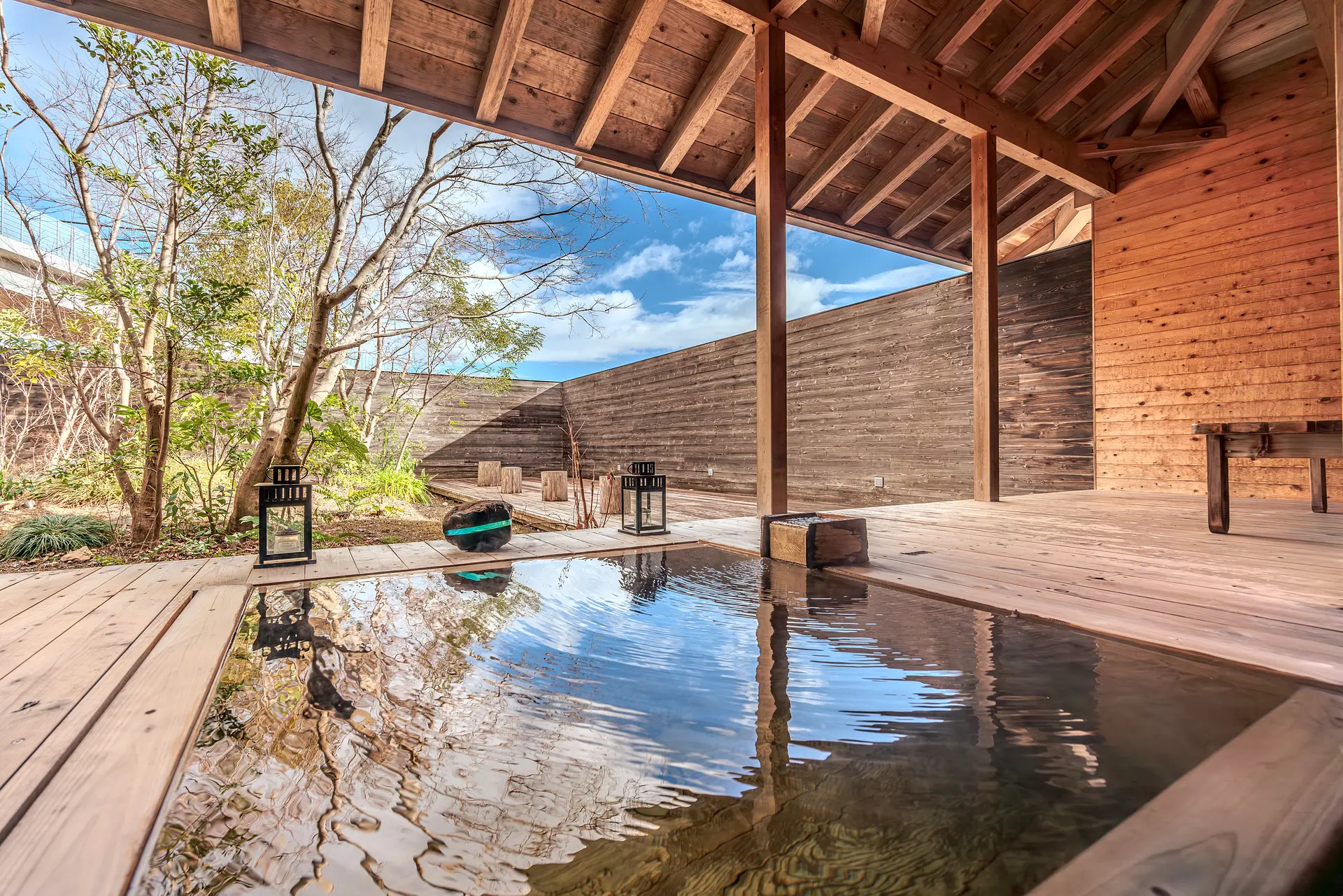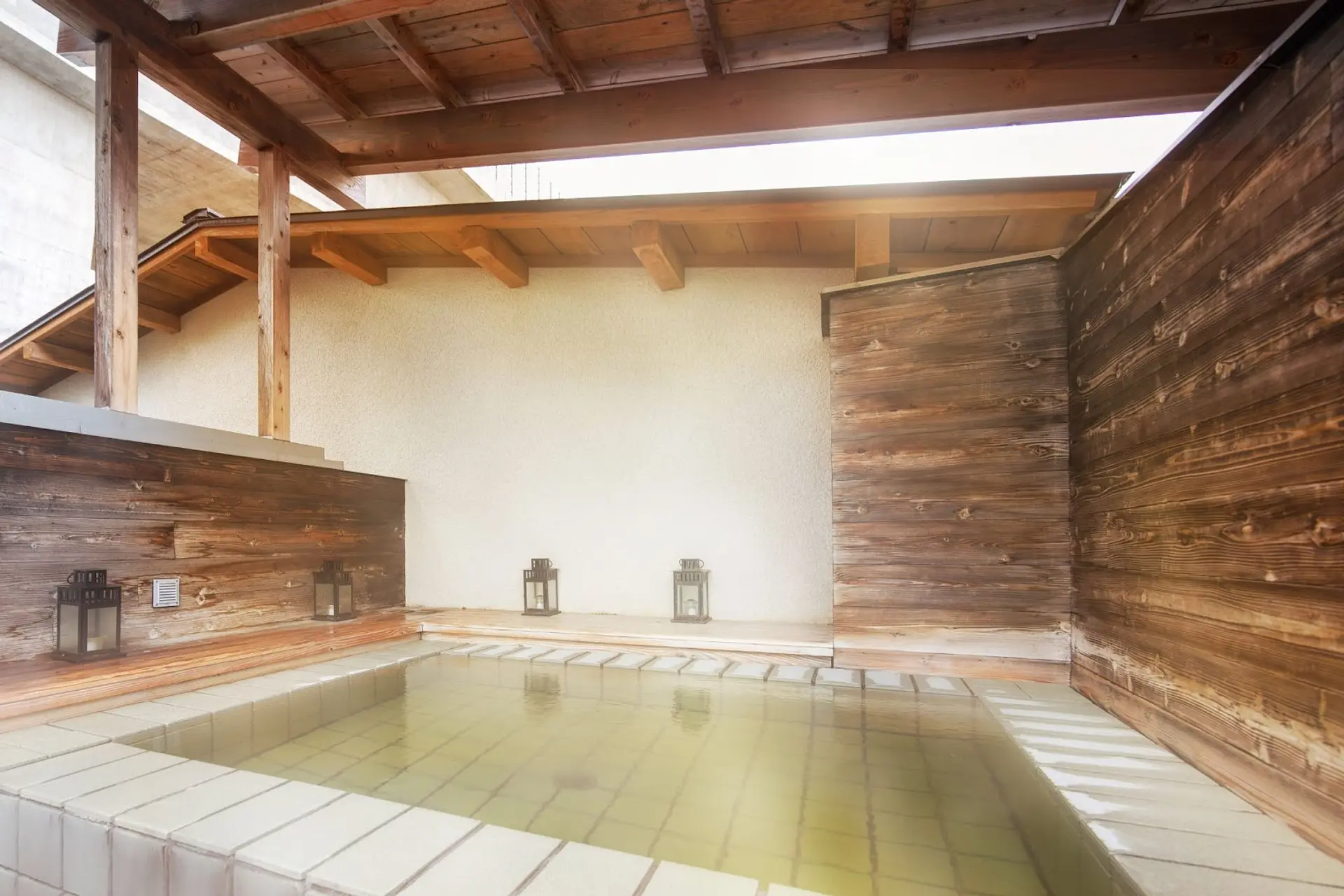 木のぬくもりに包まれた露天風呂では、周囲の目を一切気にすることなく、ゆったりと温泉を楽しむことができる設計になっています。